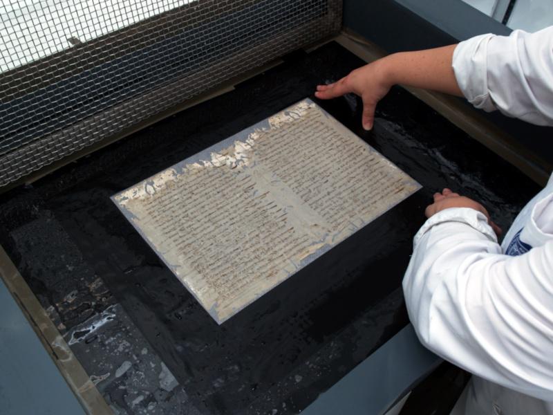 Detalle de traballos de conversación e restauración realizados no Arquivo. Foto: Arquivo-USC