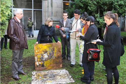 A artista brasileira Christina Oiticica (Rio de Janeiro en 1951) volveu a Compostela este mércores para desenterrar a obra que en xuño deste ano ocultou no patio da Facultade de Xeografía e Historia como parte dun proxecto de ‘land art’ que se poderá visitar en maio de 2009 na Igrexa da Universidade baixo o título Camiño Peregrino, unhaprodución conxunta da Vicerreitoría de Cultura da USC e a Fundación Via Galego. Acompañaron á pintora o vicerreitor Elías Torres e o presidente da Mesa pola Normalización Lingüística, Carlos Callón.