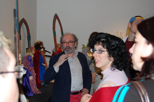 O artista ‘Kukas’, membro da Compañía de Teatro ‘Monicreques’, visitou a exposición ‘Facendo teatro con marionetas’ que estes días se atopa no Centro de Artesanía de Lugo e que recolle a traxectoria desta compañía. Kukas aproveitou a ocasión para realizar unha visita guiada para os rapaces do grupo de teatro ‘Pinchacarneiro’ acompañado polo vicerreitor de Cultura da USC, Elias J. Torres.