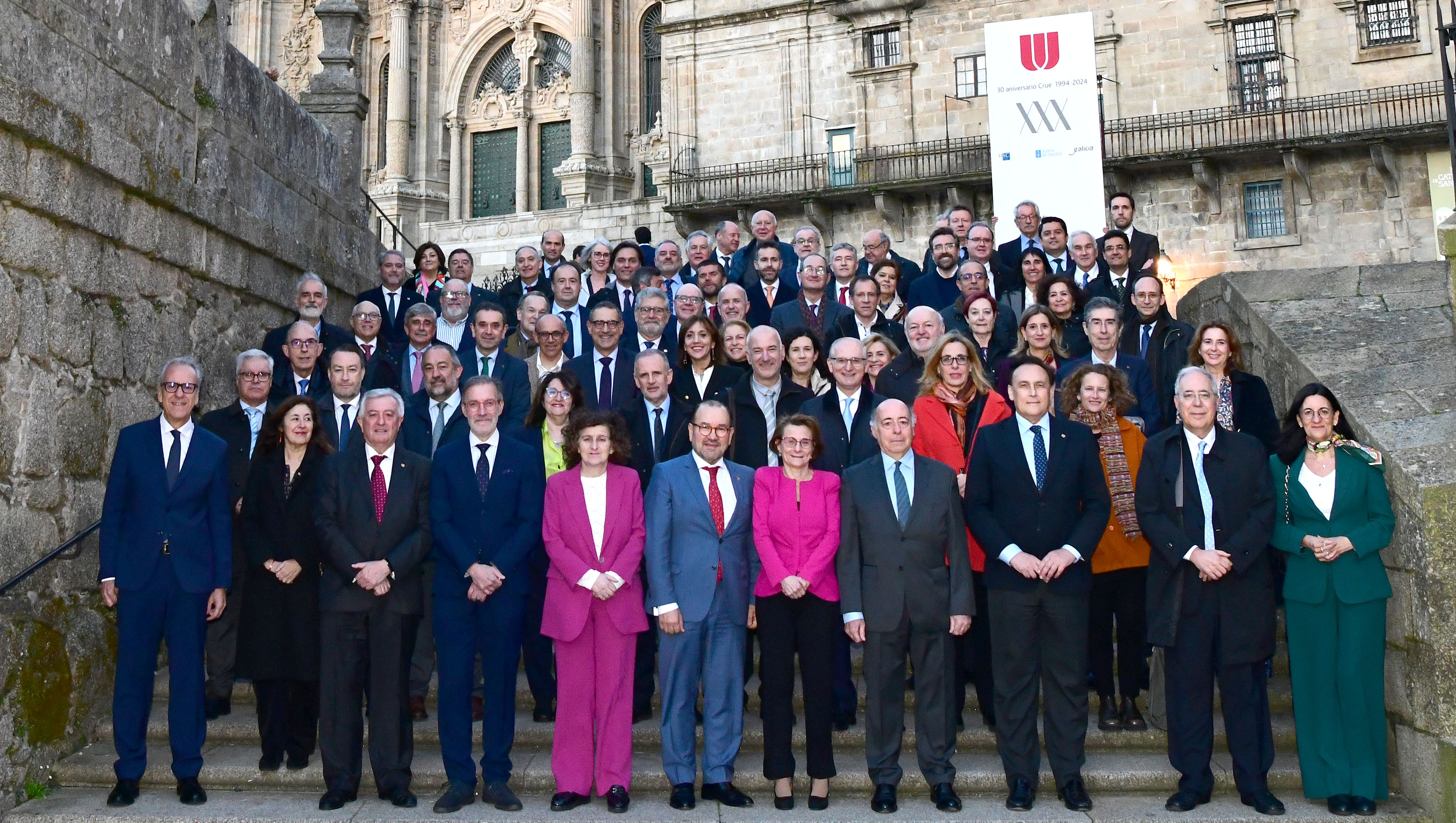 A Asemblea Xeral da CRUE foi precedida este mércores dunha xornada dedicada a abordar os retos que presenta a intelixencia artificial, e posteriormente os ex presidentes de CRUE Universidades Segundo Píriz, Roberto Fernández, José Carlos Gómez Villamandos e Juan Romo foron obxecto este mércores 13 dun acto de recoñecemento no Hostal dos Reis Católicos, no que a presidenta de CRUE lles fixo entrega a cada un dun volume sobre os principais fitos dos seus respectivos períodos de goberno á fronte da asociación.