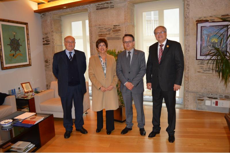 O ex reitor da Universidade de Guanajuato (México), José Manuel Cabrera, e o profesor do Departamento de Medicina Veterinaria da Universidade de Sassari (Cerdeña), Antonio Scala, acompañados da presidenta da Axencia pola Calidade do Sistema Universitario de Galicia (ACSUG), a profesora na Facultade de Veterinaria da USC Patrocinio Morrondo Pelayo, visitaron este martes a sede universitaria luguesa, onde tiveron a ocasión de coñecer polo miúdo a oferta académica e de servizos de que dispón o Campus Terra da USC.