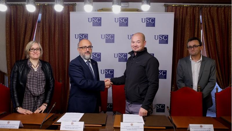 O novo acordo acadado entre a USC e a AGPXC esténdese alén da realización de prácticas profesionais titorizadas, que é o obxectivo do convenio asinado este xoves en Compostela polo vicerreitor de Oferta Docente da USC, Roberto López, e o presidente da Asociación Galega de Profesionais da Xestión Cultural, Alberto García Sánchez.