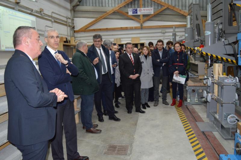 A Axencia Galega da Industria Forestal (Xera) e a Plataforma de Enxeñaría da Madeira Estrutural (Pemade) da USC impulsan habilitar nas propias dependencias de Pemade, localizadas na Escola Politécnica Superior de Enxeñaría do campus de Lugo, un espazo que contribúa a xerar valor engadido á madeira procedente de especies forestais galegas. O director de Xera, José Ignacio Lema, avanzou esta inminente iniciativa no marco da primeira visita realizada polo conselleiro de Economía, Emprego e Industria, Franscisco Conde, ás instalacións de Pemade, cuxo director, o tamén catedrático do Departamento de Enxeñaría Agroforestal Manuel Guaita, adiantou tamén a próxima posta en marcha dunha unidade mixta en colaboración con Fimsa que estará emprazada nos espazos contemplados na ampliación das actuais instalacións de que dispón a Plataforma de Enxeñaría da Madeira Estrutural na EPS de Enxeñaría coa incorporación dunha nova nave.