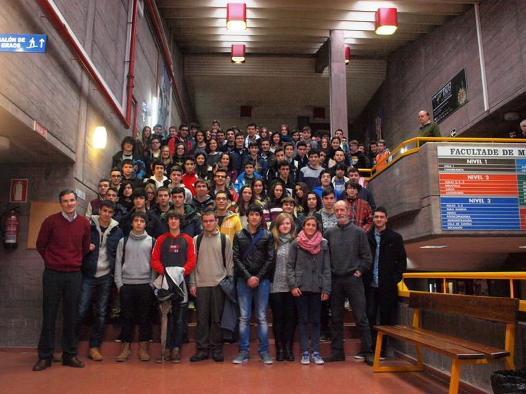 Rapaces e rapazas de numerosos centros de ensino secundario de toda Galicia participan este venres na USC nas fases autonómicas das Olimpíadas Estatais de Matemáticas e Bioloxía, a celebraren cada unha na súa correspondente facultade. Na fase autonómica da IX Olimpíada de Bioloxía participan 107 estudantes de Bioloxía de 2º de bacharelato de máis de 30 centros, que comezaron a proba cun exame tipo test centrado na base molecular e fisico-quimica da vida, cunha duración dunha hora e corenta e cinco minutos. Tras un breve descanso terá lugar a parte práctica. Xa para a tarde está prevista unha visita aos laboratorios de investigación da Facultade de Bioloxía e do CIBUS. Nesta edición o profesor Jesús Domínguez Conde, etólogo do Departamento de Zooloxía e Antropoloxía Física da USC, impartirá ademais a conferencia ‘Descubrindo o comportamento animal’. A clausura e entrega de diplomas terá lugar as 18:00 horas na Aula Magna da Facultade coa presenza do director xeral de Educación e Innovación Educativa da Xunta de Galicia, os decanos das tres Universidades galegas, o do Colexio Oficial de Biólogos, a directora do Grupo de Traballo de Bioloxía da CIUG e o delegado da Olimpíada Española de Bioloxía (OEB). A IX Olimpíada de Bioloxía, convocada anualmente e organizada pola OEB en colaboración co Colexio Oficial de Biólogos de Galicia, a Xunta e as tres Universidades galegas, celébrase co obxectivo de fomentar os estudos relacionados coa Bioloxía e promover o interese pola investigación. Matemáticas Pola súa banda, para a L Olimpíada Matemática Española cóntase en Galicia co patrocinio de EDISA Centro de Innovación cuxo presidente, Alfonso Amorín, foi profesor do Departamento de Álxebra da Facultade de Matemáticas, coa que continúa colaborando. A competición diríxese ao alumnado de bacharelato – e excepcionalmente da última etapa da ESO que acredite especiais aptitudes así como integrantes do proxecto EsTalMat-Galicia– e nela selecciónanse as tres persoas que formarán o equipo que represente a Galicia na Fase Nacional, a celebrar do 27 ao 30 de marzo na localidade valenciana de Requena. O programa comezou cunha sesión matinal de tres horas e media para resolveren tres problemas que se repetirá de igual maneira pola tarde.