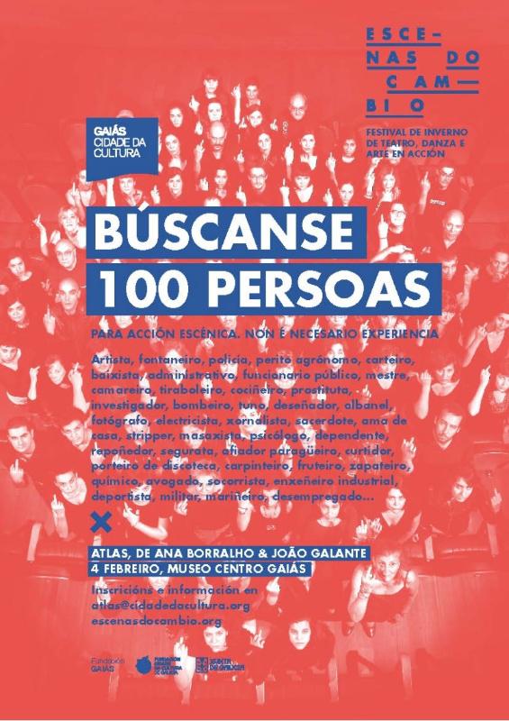 Estudantes, docentes ou Persoal de Administración e Servizos. Calquera con gañas de subirse a un escenario para representar un Atlas da organización social humana. Os artistas Ana Borralho e João Galante porán en acción a comezos de febreiro en Santiago una obra coral para a que precisan persoas voluntarias, sen experiencia previa en teatro, danza ou artes escénicas. E nunha cidade como Compostela, que pivota en boa medida en torno á Universidade, a súa comunidade non podía quedar á marxe. Por esta razón, e no marco da colaboración que existe entre a USC e a Cidade da Cultura, faise un chamamento á participación nesta peza comunitaria que subirá ao escenario por primeira vez en Galicia 100 persoas de diferentes profesións coas que facer unha “ revolución silenciosa”, en palabras dos seus creadores. Atlas, que en Santiago se enmarca no Festival de Inverno de Teatro, Danza e Arte en Acción Escenas do Cambio da Cidade da Cultura, foi presentado en países de todo o mundo nos últimos catro anos e en cada cidade lograron tecer un manifesto colectivo coa voz da xente común, “un exército abstracto para unha guerra concreta”. Quen desexe participar deberá enviar un correo electrónico a atlas [at] cidadedacultura.org (atlas[at]cidadedacultura[dot]org) solicitando información ou chamar a Juancho Gianzo ao 633463693 ou Sabela Pillado ao 633615801.
