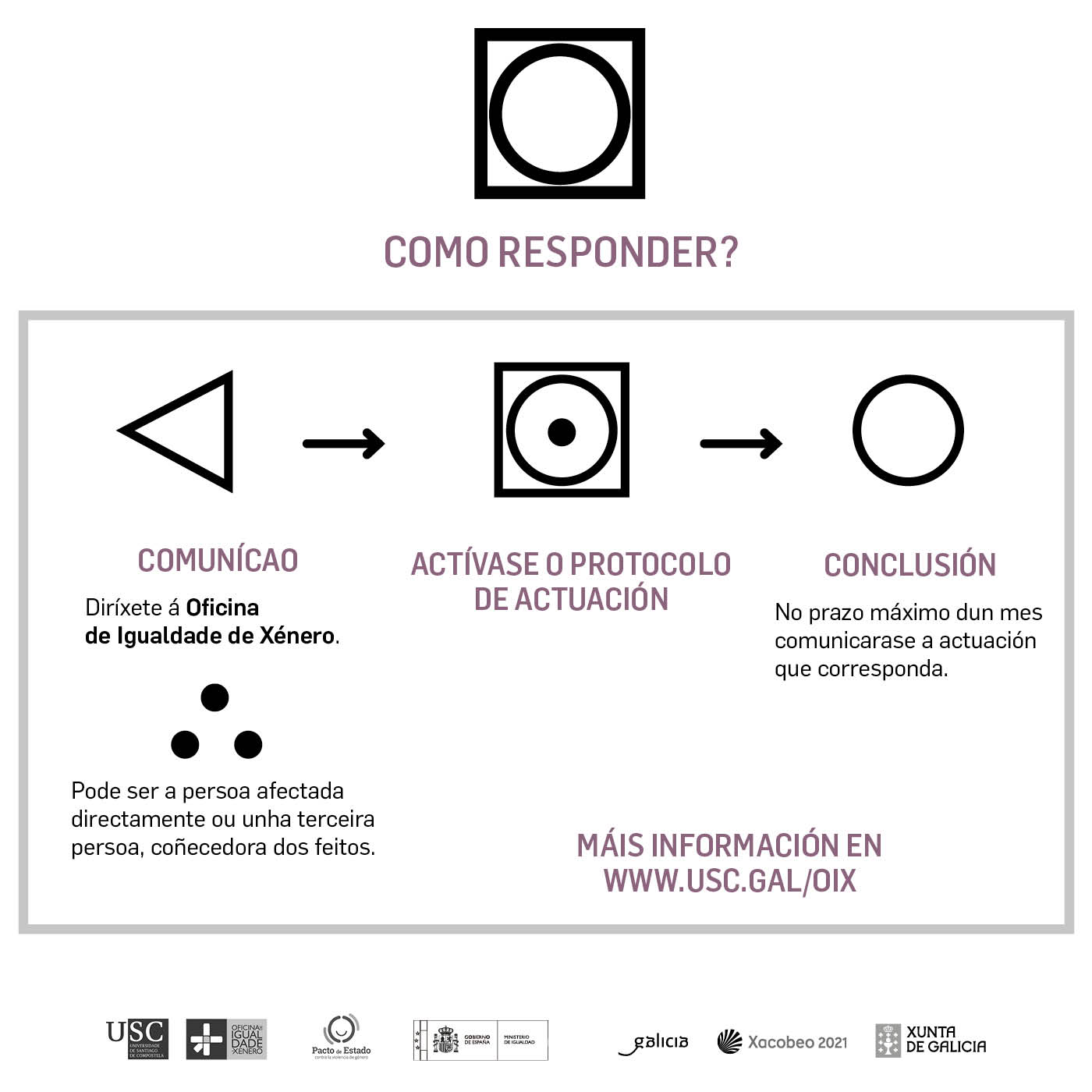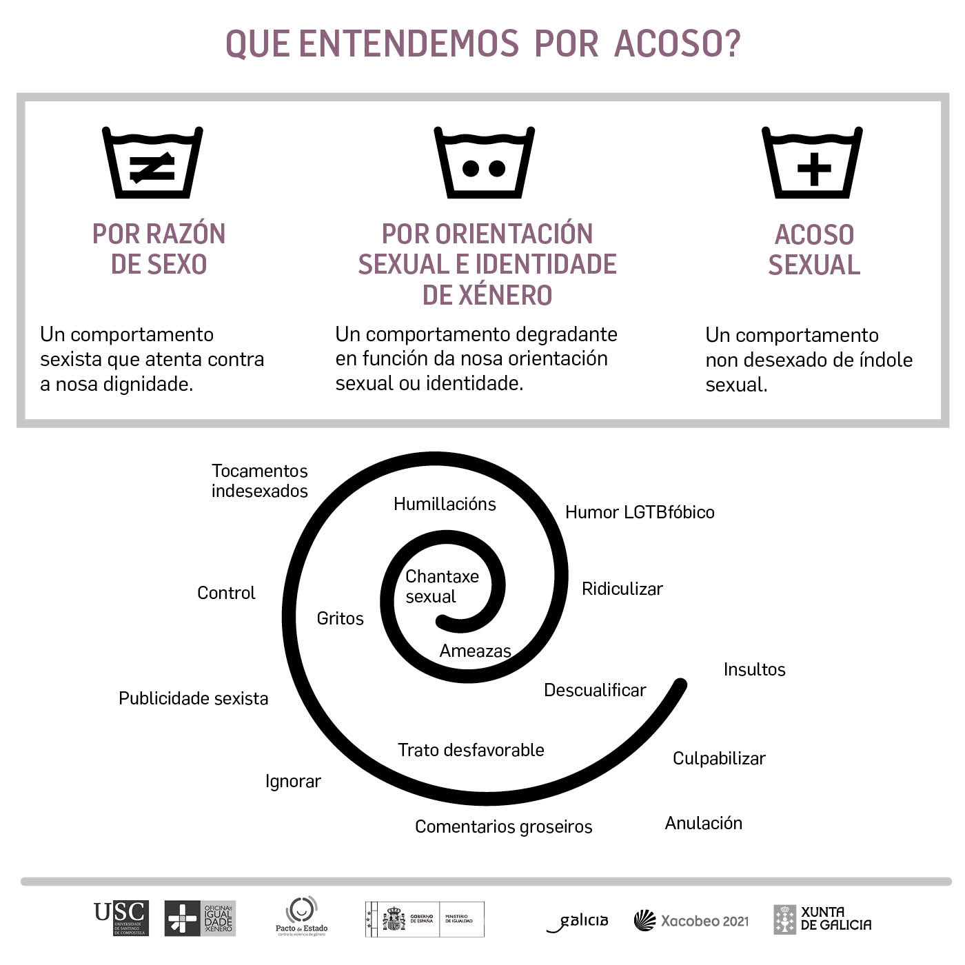 O estudo conclúe que só un 11,3% do alumnado, o 27,1% do PDI e o 23,2% do PAS coñece o ‘Protocolo fronte ao acoso sexual e acoso por razón de sexo, orientación sexual e identidade de xénero da USC’. Para paliar esta situación, ponse en marcha a campaña ‘Fórmula fronte ao acoso’ para achegar e ampliar a súa visibilidade deste protocolo que entrou en vigor no ano 2017 e que se activou ata en dez ocasións. A investigación coordinada por Méndez Lois conclúe que os chistes e os xestos lascivos son as situacións máis habituais neste tipo de acoso.