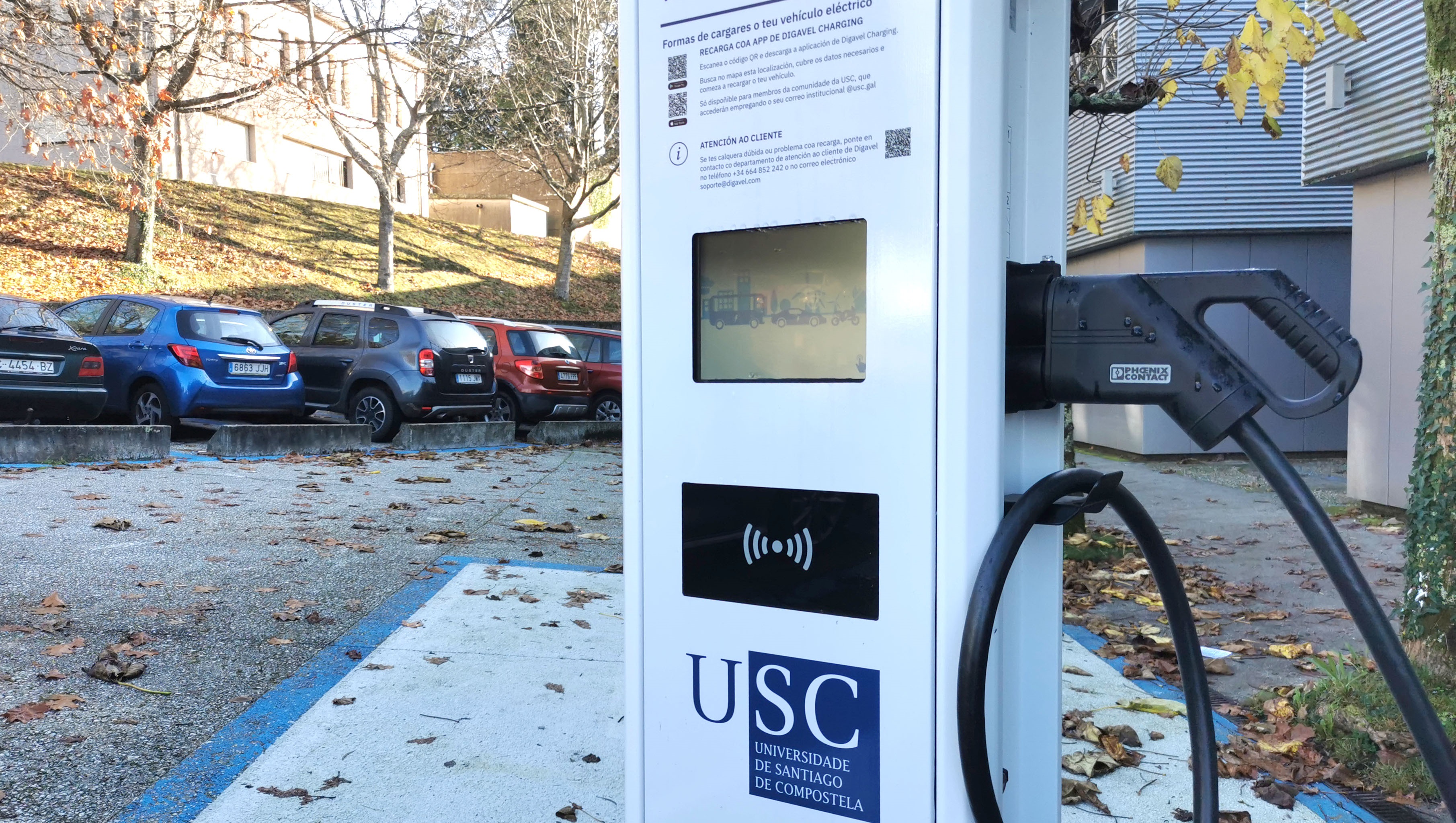 A instalación de puntos de recarga para vehículos eléctricos que xa están á disposición da comunidade universitaria fortalece o compromiso da USC coa sustentabilidade. Os devanditos puntos atópanse situados nas facultades compostelás de Matemáticas e de Filoloxía, así como na Escola Polítécnica Superior de Enxeñaría do Campus de Lugo. Esta iniciativa entronca coa liña de traballo que a USC está a desenvolver para intensificar o vínculo dos espazos universitarios co tecido urbano e social no que se atopan inseridos.