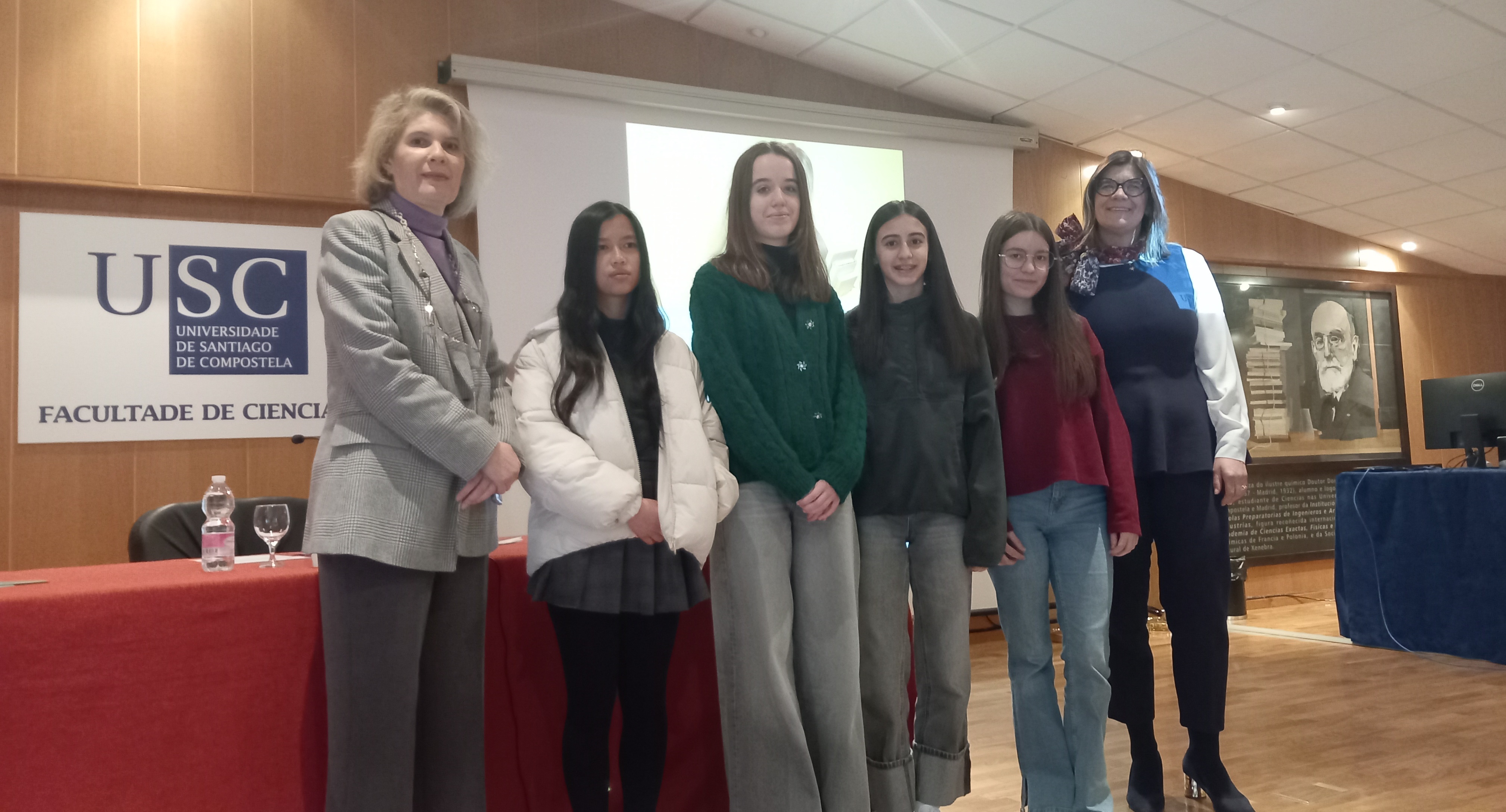 A decana de Ciencias e a directora da UNED en Lugo, xunto ás estudantes premiadas