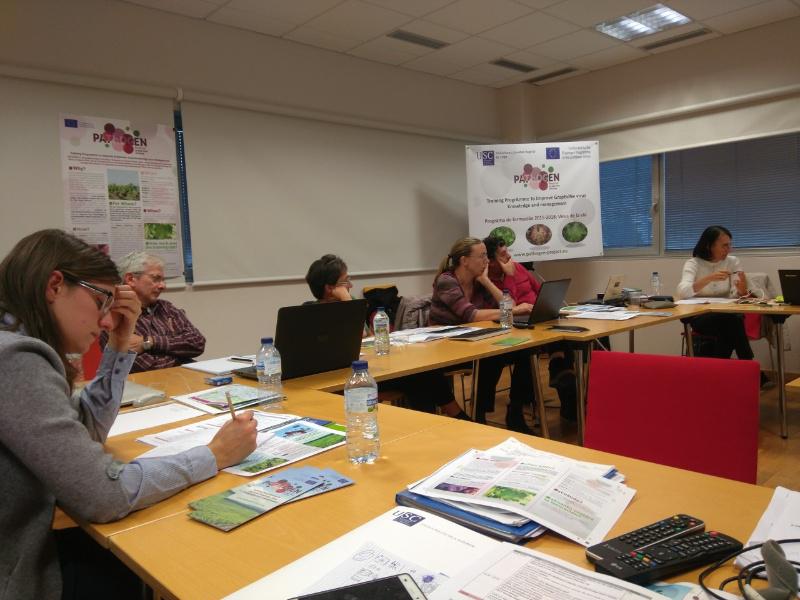 A elaboración e deseño dos diferentes programas de formativos que se ofrecerán a través da plataforma en liña do proxecto Pathogen centra na actualidade o traballo de todos os investigadores involucrados neste proxecto, a través do que a Unión Europea pretende reducir as perdas e os danos que cada ano provocan as viroses na produción vitivinícola. Daquela, mellorar o coñecemento e a formación de todos os actores involucrados no sector (viticultores, asesores, consultores, viveiristas...) e fomentar a sensibilización e concienciación sobre esta problemática, constitúen dúas da premisas desta iniciativa, segundo indiciou a coordinadora do proxecto Pathogen na USC, a profesora do Departamento de Produción Vexetal da USC na Escola Politécnica Superior do Campus Terra, Cristina Cabaleiro. A formación que ofertará no futuro a plataforma en liña Pathogen está estruturada en tres niveis: básico, avanzado e formadores e contempla diversos módulos temáticos. Os niveis básicos e avanzado inclúen unha introdución aos virus máis importantes, así como información relativa ás principais vías e formas de transmisión, métodos de detección máis comúns e outras cuestións de carácter legal. O nivel avanzado inclúe ademais dous módulos máis sobre enfermidades víricas emerxentes e perspectivas de investigación na xestión dos virus. O nivel de formadores estará centrado na formación de profesores ou instrutores que, unha vez concluído o desenvolvemento do proxecto Pathogen poderán ensinar a formación recibida ou outros cursos específicos relacionados a outros profesionais ou actores tamén involucrados no sector vitivinícola. Socios Os socios participantes neste proxecto europeo (Instituto Francés da Vide e do Viño; Centro de Investigación Aplicada para a Viticultura e Horta, unha spin off da Universidade Católica do Sacro Cuore, (Italia), ademais de Feuga e USC) veñen de protagonizar unha sesión de traballo no Campus Terra da USC, onde logo de avanzar no deseño dos contidos incluídos nos diferentes módulos de formación, tamén participaron nunha visita de campo á Ribeira Sacra. O tamén profesor do Departamento de Produción Vexetal da USC na EPS e integrante do grupo Viticultura e Sanidade Vexetal, Julián García Berrios, foi o encargado de guiar esta visita de campo, durante a que os participantes puideron coñecer as singularidades que presenta esta zona de viñedos de Galicia, así como algunha das viroses que sufre. Cabaleiro e García sinalaron que os virus máis xeneralizados en Galicia e tamén no resto das rexións vitivinícolas europeas son o Entrenudo corto e o Enrolado da vide. Non se tratra de virus letais, pero a súa incidencia é persistente e continuada no tempo, o que fai que aumente a gravidade da súa incidencia. Daquela, á prevención destas viroses e a adopción de medidas de control para evitar a súa transmisión ou propagación son de vital de importancia, salientan estes investigadores da USC. Reuníón de traballo do proxecto Pathogen na Vicerreitoría de Coordinación do campus de Lugo