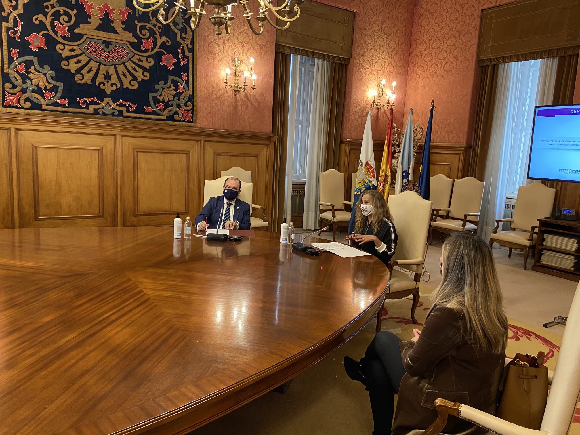 Finalmente, o programa de mentoring que se desenvolverá ao abeiro deste convenio, constará de tres fases. A primeira fase será de selección e toma de contacto cos mentee que cheguen á provincia e demanden o programa a través da Deputación, co obxecto de definir as expectativas e a busca do ou da referente máis axeitada. A segunda fase constará do desenvolvemento e seguimento do traballo; mentres que a terceira, permitirá levar a cabo a avaliación de resultados en base aos obxectivos previstos e as posibles vías de colaboración futura. O horizonte que se persegue con esta acción é que “os que queiran regresar teñan un certo respaldo”, tal e como puxo de manifesto a directora da Cátedra, María Cadaval, no acto de sinatura do convenio. María Xosé Rodríguez Galdo, coordinadora de Publicacións da Cátedra acompañou á profesora Cadaval no transcurso da sesión.