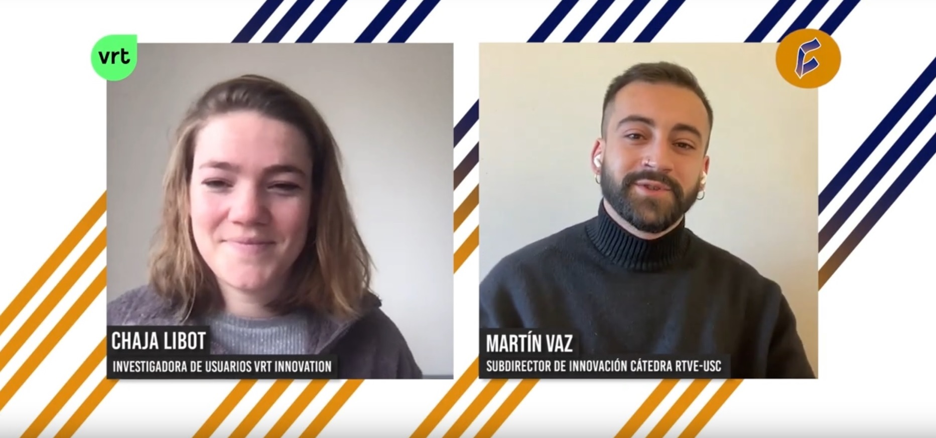 Deste xeito, a web da Cátedra, así como os seus perfís nas redes sociais Twitter e Linkedin difunden xa contidos relativos ao eido de actuación da Cátedra. Neste senso, Chaja Libot, investigadora de usuarios na VRT, a radiotelevisión pública flamenca, inaugura as conversas dos 'Innovation Meetings', unha serie de encontros con profesionais das radiotelevisións públicas europeas.