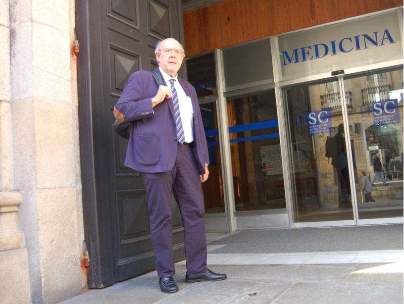 Julián Álvarez Escudero, na entrada principal da Facultade de Medicina e Odontoloxía