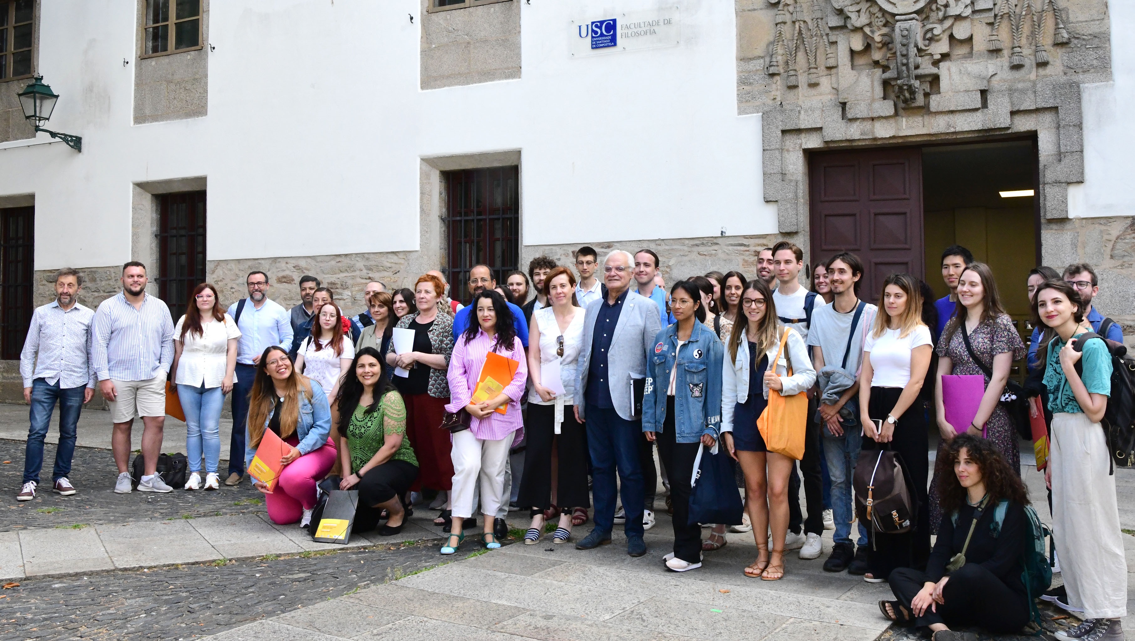 A USC e a Real Academia Galega (RAG) retomaron este luns 3 a celebración dos cursos de lingua e cultura galegas ‘Galego sen fronteiras’, despois de tres anos de interrupción por mor da pandemia. Nesta trixésimo terceira edición participarán ata o 24 de xullo preto de medio cento de estudantes de países de tres continentes. “Non hai nada máis íntimo que poida expresar a cultura dun pobo que a lingua que aprendemos a falar cando somos nenos e nenas”, afirmou a vicerreitora de Estudantes e Cultura, Pilar Murias, quen se referiu tamén á ollada aberta dos estudantes para coñecer a cidade que os acolle, Santiago de Compostela, alén dos tópicos. “Marcharedes namorados, podedes telo por seguro, igual que nós ficaremos namorados de vós. Poucos días pero moi intensos, así é sempre. E logo, por onde queira que a vida vos leve, sempre vos teremos polos nosos embaixadores”, díxolles o presidente da RAG, Víctor F. Freixanes, no acto inaugural celebrado na Facultade de Filosofía da USC.