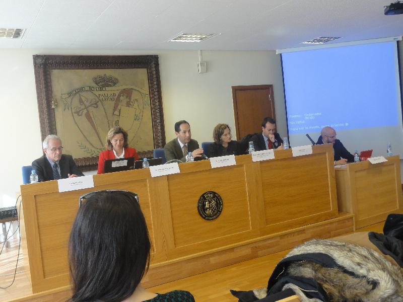 A responsabilidade social empresarial e os consumidores como grupos de interese foi o lema dunha mesa redonda celebrada na Facultade de Dereito e organizada polo Centro de Responsabilidade Social, Goberno Corporativo e Protección do Inversor da USC (CERGI) e a Rede Universitaria Empresa e Administración dentro das actividades do curso de Integración Europea e Dereito Privado do módulo Jean Monnet. Presentada polo decano da Facultade, Luís Míguez Macho, na mesa interviñeron a subdirectora xeral de Traballo da Xunta de Galicia, María Coutinho Villanueva; Patricia Reverter Guillot, de KPMG España; Pablo Martín, de Corresponsables; Antonio Cortés, de Gadis; e o presidente de Cogami, Anxo Queiruga. A mesa abordou a relación entre consumidores e responsabilidade social (RS), partindo da hipótese de que os consumidores teñen unha actitude máis favorables fronte aquelas empresas e produtos considerados responsables, “o que evidencia a súa crecente relevancia como grupo de interese”, sinalan os promotores do encontro. María Coutinho destacou a importancia de que as empresas aposten pola RS pola súa incidencia nos seus consumidores directos e na cidadanía en xeral. Neste senso, anunciou a inminente exposición pública do borrador da nova Estratexia Galega de Responsabilidade Social para favorecer a participación de todas as persoas interesadas. No relativo ás novas tendencias en responsabilidade social, Patricia Reverter avogou por superar a actual concepción do ‘reporting’ corporativo para ir máis alá dos datos relativos aos ratios financeiros e chegar a explicar cal é a capacidade de creación de valor no longo prazo. Pola súa banda, Pablo Martín referiuse á próxima publicación da nova Estratexia Europea de Responsabilidade Social e ao papel dos medios de comunicación como difusores proactivos da RS, mentres que os representantes de Gadis e COGAMI expuxeron cómo desenvolven a RS.