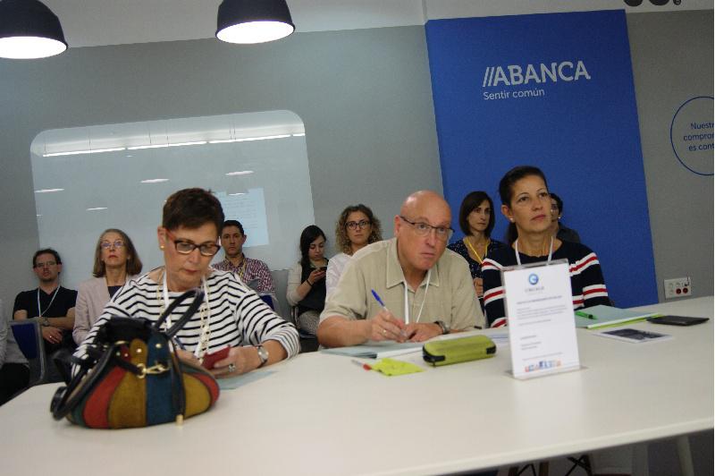 Os docentes da USC (en primeira fila) Teresa Fanego, Ignacio Palacios e Paloma Núñez Pertejo, nunha actividade organizada en colaboración coas outras universidades galegas