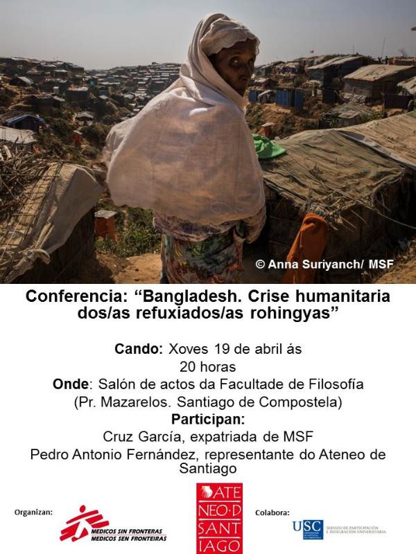Cruz García, galega que traballa na unidade de emerxencias de Médicos sin Fronteras e que acaba de regresar de Bangladesh, ofrece este xoves 19 de abril unha charla sobre a crise humanitaria dos rohingyas, que coñece de primeira man.