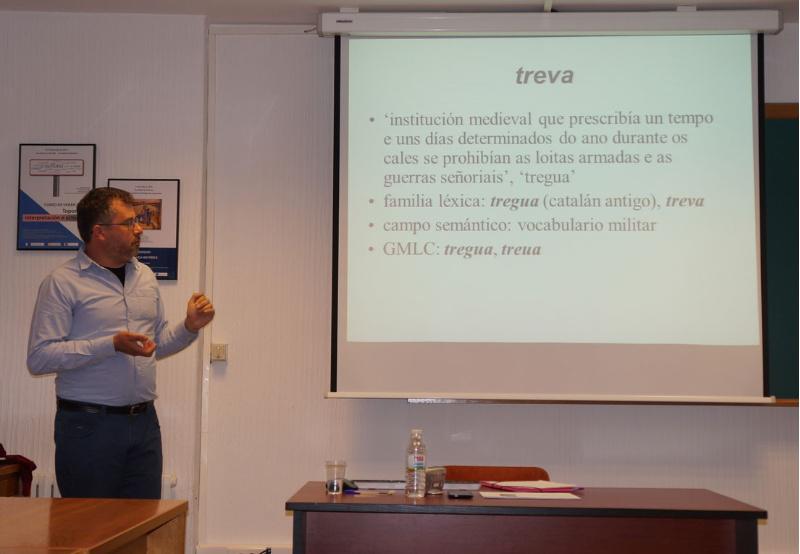 O investigador do CSIC Joan Maria Jaime Moya impartiu este venres no Instituto da Lingua Galega da USC a conferencia ‘Os xermanismos do catalán no contexto do latín medieval’ na que presentou unha mostra do seu traballo de investigación posdoutoral coma lexicógrafo no Glossarium Mediae Latinitatis Cataloniae (GMLC), un dicionario especializado de palabras latinas e románicas documentadas en fontes catalás dos séculos IX ao XII.