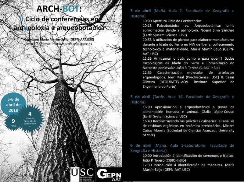O Grupo de Estudos para a Prehistoria do Noroeste Ibérico-Arqueoloxía, Antigüidade e Territorio da USC (GEPN-AAT) desenvolve a comezos de abril na Facultade de Xeografía e Historia a segunda edición do ciclo de conferencias ‘Arch-Bot’ en arqueoloxía e arqueobotánica. Coordinado por María Martín-Seijo, no encontro participan especialistas internacionais de recoñecido prestixio.