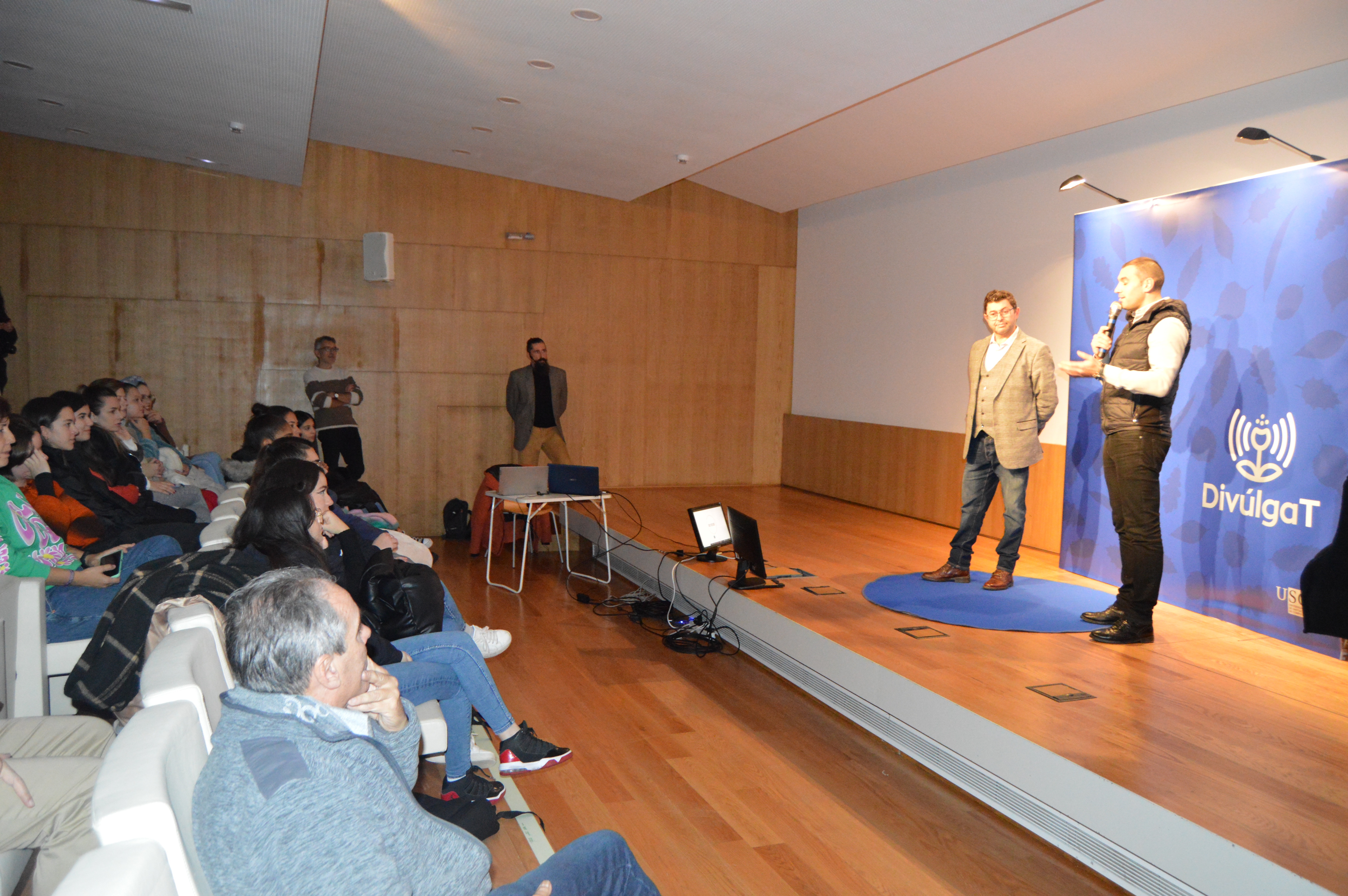 “O DivúlgaT, antes DivulgaTerra, é un programa pensado para dar visibilidade á mocidade investigadora da sede universitaria luguesa, tanto a aqueles que traballan en ámbitos ligados cos piares do Campus Terra, como nas áreas de Ciencias Sociais ou Humanidades”, sinalou o vicerreitor de Organización Académica e Campus de Lugo, Francisco Fraga, na sesión de apertura desta iniciativa de divulgación científica, un acto no que o deputado provincial delegado da área de Recursos Sostibles, Roberto Fernández Rico, abundou na nececidade de divulgar e dar a coñecer o traballo dos investigadores e, por ende, os distintos avances científicos acadados.