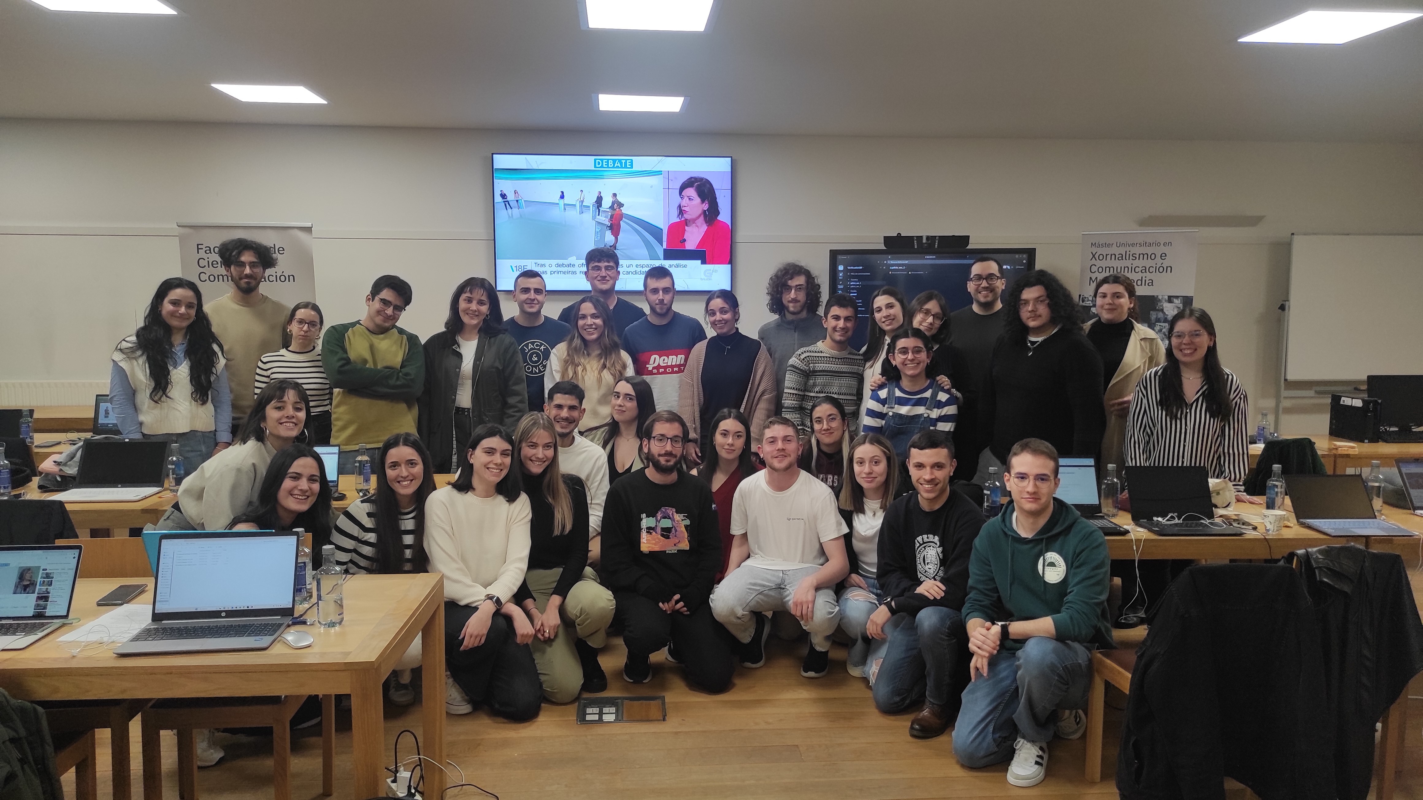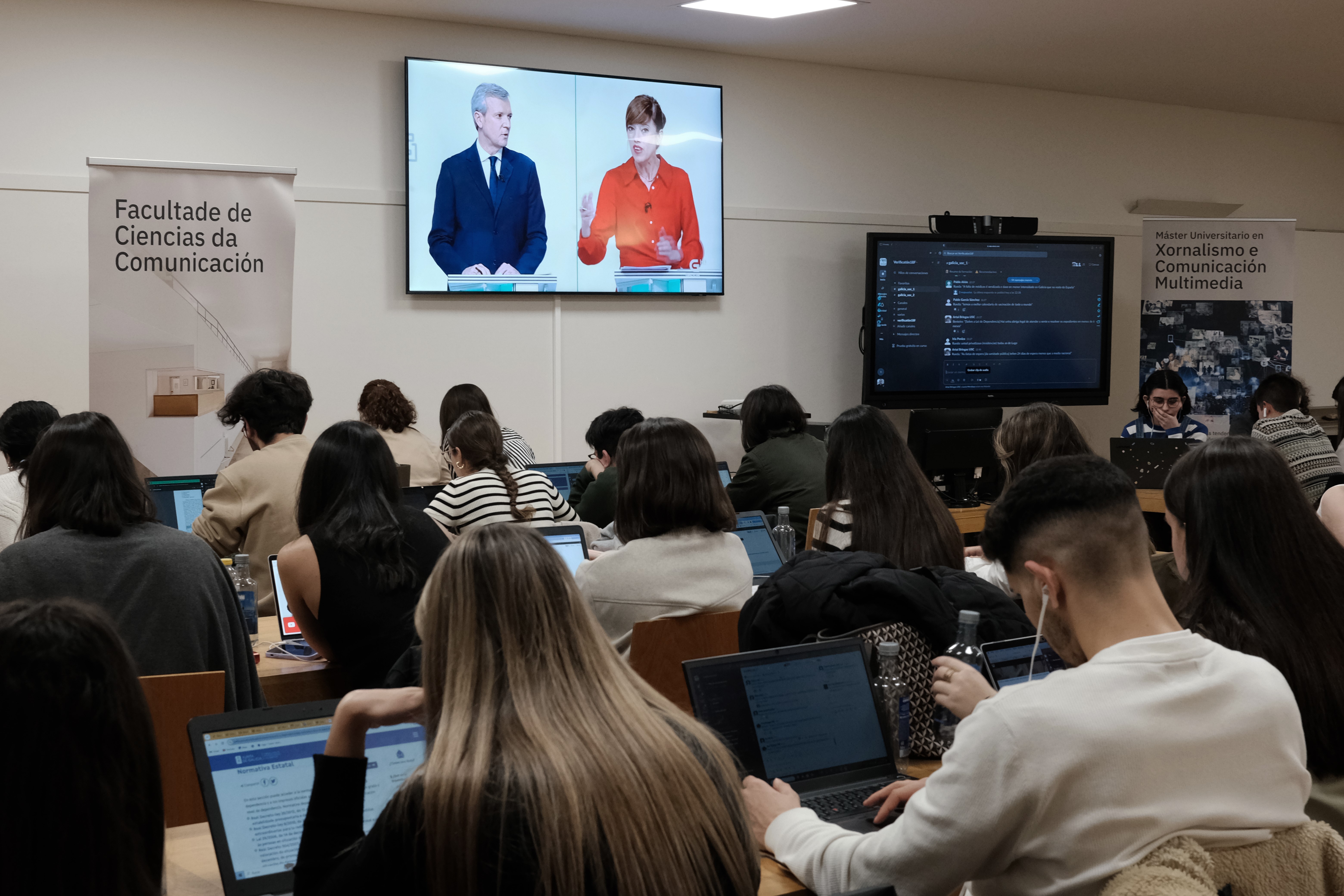 Estudantado da Facultade de Ciencias da Comunicación da USC realizou o seguimento en directo e verificou as declaracións dos representantes políticos que participaron no debate electoral previo ás eleccións autonómicas galegas que tivo lugar este luns 5 e que se emitiu a través da Televisión de Galicia. Un grupo de 34 estudantes do grao en Xornalismo e dobre grao en Xornalismo e Comunicación Audiovisual, acompañados por cinco docentes do centro, seguiron en directo o debate e verificaron unha trintena de declaracións dos representantes políticos, logo de identificar todas as afirmacións factuais que pronunciaron as persoas candidatas. A actividade desenvolveuse en colaboración con Newtral, unha organización dedicada á verificación que conta cunha liña educativa na que se integra a iniciativa Verificatón 18F, xunto ás tres universidades públicas galegas.