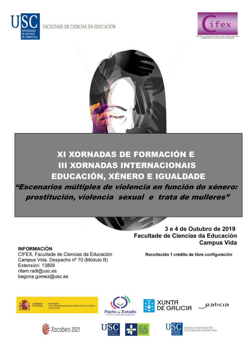O Centro Interdisciplinario de Investigacións Feministas e de Estudos do Xénero (Cifex) impulsa este xoves 3 e o venres 4 de outubro as XI Xornadas de Formación e III Xornadas Internacionais ‘Educación, Xénero e Igualdade’. Este foro segue unha traxectoria iniciada hai xa máis de tres lustros e analiza, nesta edición, a problemática dos escenarios múltiples de violencia en función do xénero que se dan na prostitución, violencia sexual e trata de mulleres.