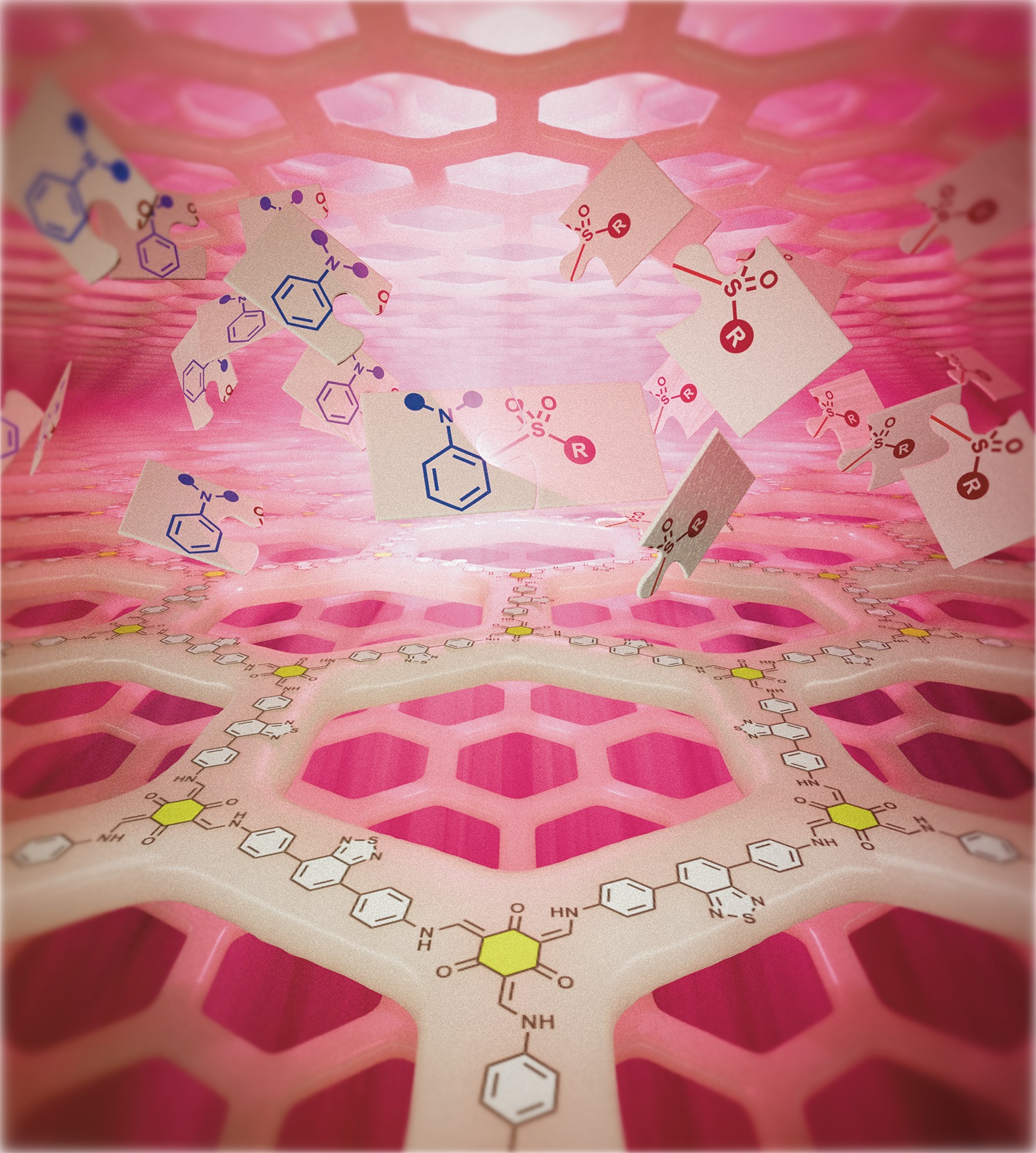 Para demostrar o alcance desta estratexia, os investigadores aplicaron o novo COF a unha reacción modelo de sulfonilación directa de ligazóns C-H en anilinas, que permite obter sulfonas, compostos presentes en numerosas moléculas bioactivas e farmacéuticas. Estes grupos funcionais melloran propiedades como a estabilidade ou a afinidade por dianas biolóxicas, polo que “desenvolver métodos directos, limpos e versátiles para producilos a partir de materias primas sinxelas é de gran interese para a síntese orgánica e a industria química”, destacan. Con cantidades mínimas de catalizador e baixo condicións suaves, o sistema logrou transformar eficientemente unha ampla variedade de compostos, evidenciando o seu potencial para aplicacións reais.