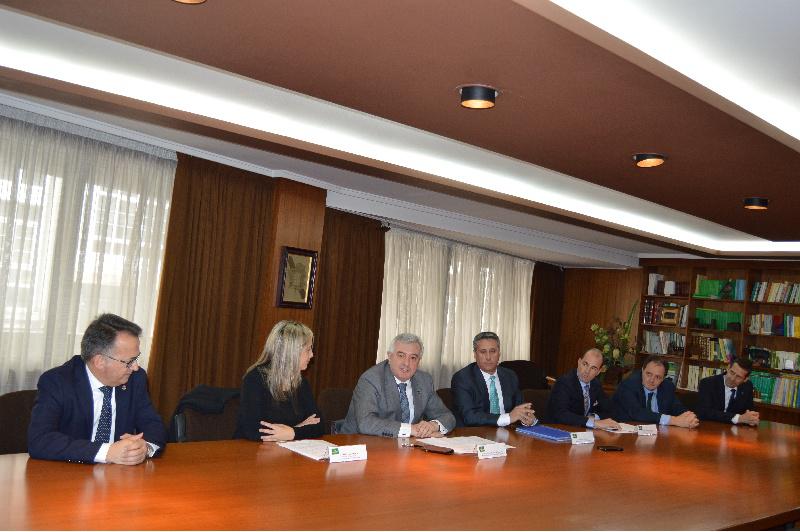 Bueno, Loureiro, Viaño, Varela, López, Méndez e Barreiro, na sinatura do convenio para o mantemento do CITT, na sede de Caixa Rural Galega
