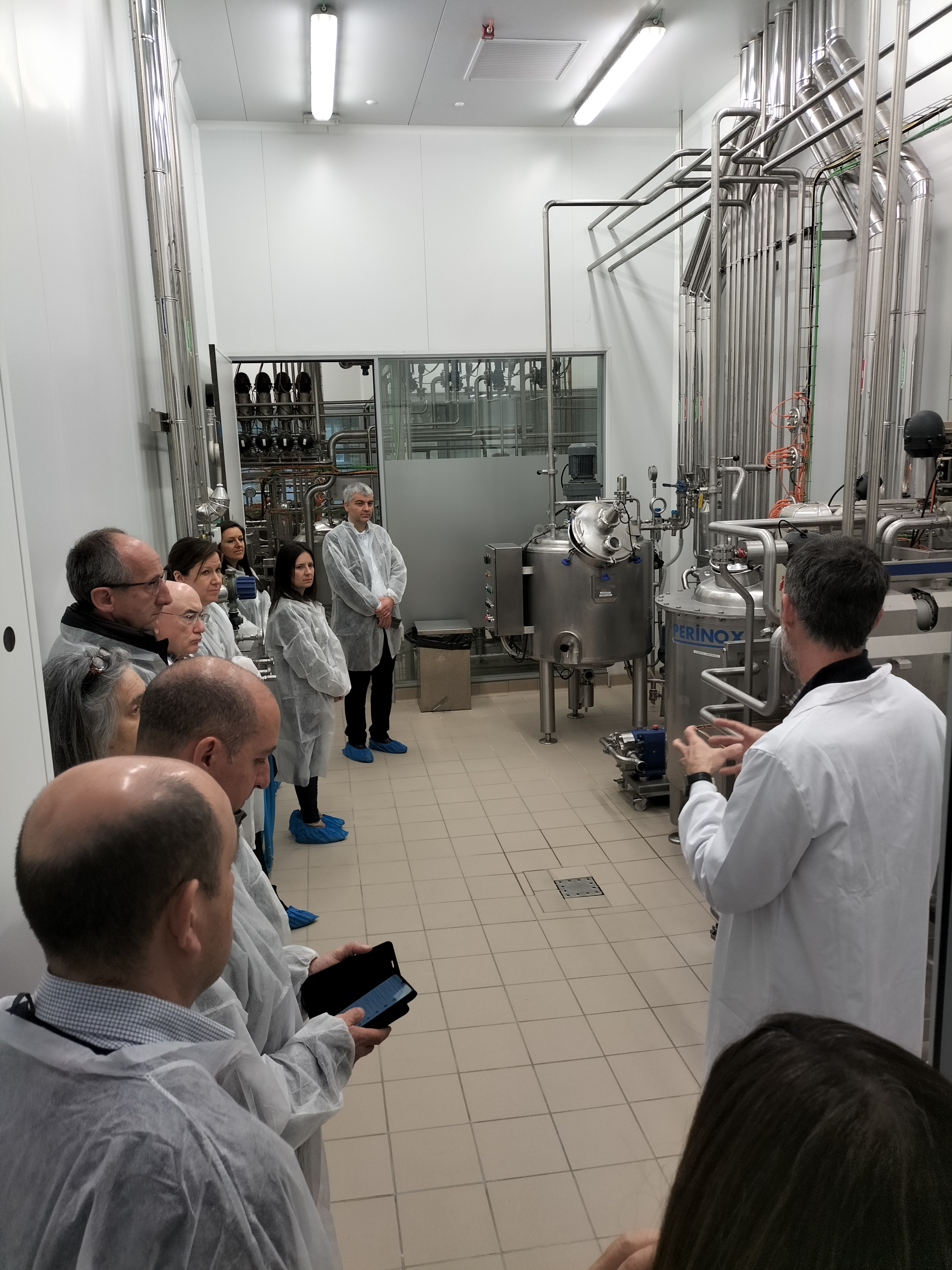 A comisión executiva do Clúster Alimentario de Galicia, un órgano no que desde a súa creación participa a catedrática Ángeles Romero como representante da USC, aproveitou a súa primeira reunión anual de 2023 para coñecer polo miúdo as instalacións e as actividades de I+D+i que se desenvolven na APLTA. O técnico da plataforma tecnolóxica do Campus Terra da USC, Luis Aldeanueva, guiou unha visita da comitiva empresarial polas instalacións dunha das plantas piloto máis completas e modernas de Europa. A APLTA, que se estende sobre unha superficie de 2.000 metros cadrados, permite realizar ensaios a escala semiindustiral, para logo trasladados con éxito ás industrias demandantes de tales servizos.
