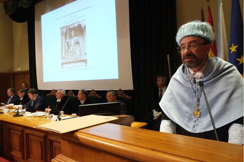 O catedrático de Lingua Española da Facultade de Humanidades de Lugo Alexandre Veiga foi o encargado este ano de pronunciar o discurso inaugural, que titulou ‘O labor dos copistas dun texto poético de clerecía’. Na súa intervención explicou de maneira concisa os resultados do estudo do Poema de Fernán González, no que leva anos inmerso e que cualificou como “o máis problemático texto literario castelán encadrable na produción poética do chamado mester de clerecía”.