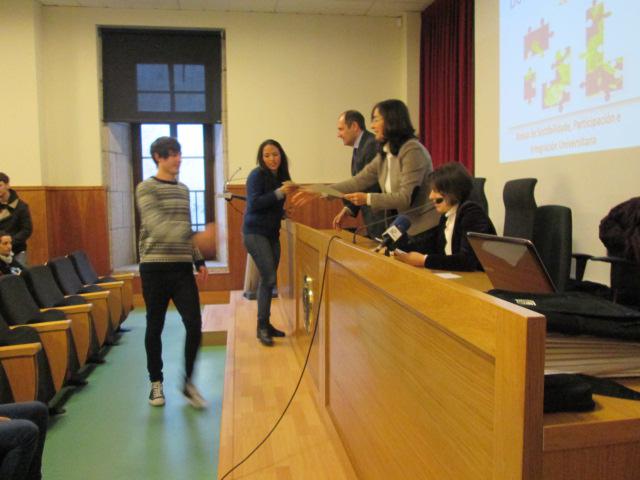Os 33 bolseiros e bolseiras de Sostibilidade, Participación e Integración Universitaria (SPIU) recibiron este martes en Filosofía as súas credenciais da man da vicerreitora de Estudantes, Cultura e Responsabilidade Social, Mª Dolores Álvarez, e o secretario executivo do Consello Social, Benigno Carril. As bolsas, que xa van pola súa décimo segunda edición financiadas polo Consello Social da USC, están integradas nunha estrutura de responsabilidade delegada e de participación onde as bolseiras e os bolseiros achegan iniciativas ás facultades e residencias e recollen inquedanzas e propostas dos mesmos, asegurando a implicación dos centros na posta en práctica do Plan de Desenvolvemento Sostible (PDS). Este tecido formado polo alumnado bolseiro e os coordinadores e coordinadoras do PDS en cada centro docente foi recoñecida por UNIVERSIA como ‘Boa práctica na gobernanza das Universidades’ a finais do 2013. A iniciativa incide no valor educativo cara ao alumnado, que recibe formación en desenvolvemento sostible e á súa vez realiza actividades de sensibilización, divulgación e formación dirixidas á comunidade universitaria. Estas tarefas dan a posibilidade aos bolseiros e bolseiras de adquirir durante cinco meses competencias no desempeño práctico, enriquecendo o seu perfil académico e complementando a súa bagaxe formativa e persoal. Ao finalizar a entrega de credenciais, o alumnado asistiu á primeira sesión formativa na que a Coordinadora do PDS, Silvana Longueira, e a responsable do funcionamento administrativo da ODS, Isabel Pazos, explicaron as liñas sobre as que se desenvolverá cada un dos plans de traballo que deberán planificar e desenvolver de forma específica segundo as características e necesidades do centro no que desempeñará as súas funcións. As primeiras actividades nas que se implicará o alumnado serán a recollida a través de enquisas de datos para o cálculo da pegada ecolóxica da USC e a mellora e mantemento dos puntos verdes do seu centro docente ou residencia.
