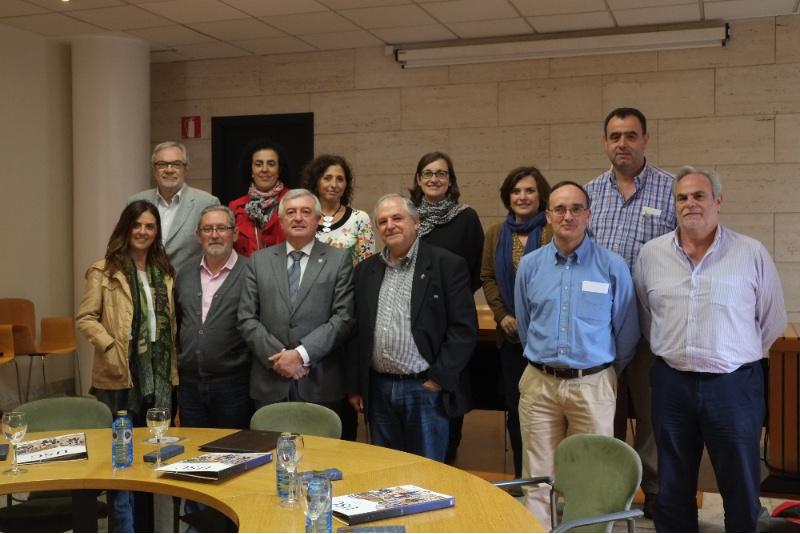 O reitor da USC, Juan Viaño, cos membros da comisión executiva da Conferencia Estatal de Defensores Universitarios