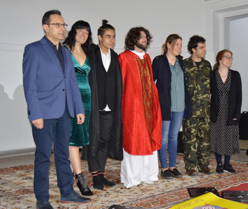Actores da compañías TeatroUSC-Lugo con promotores do certame, na presentación do XXV Festival de Teatro Universitario de Lugo