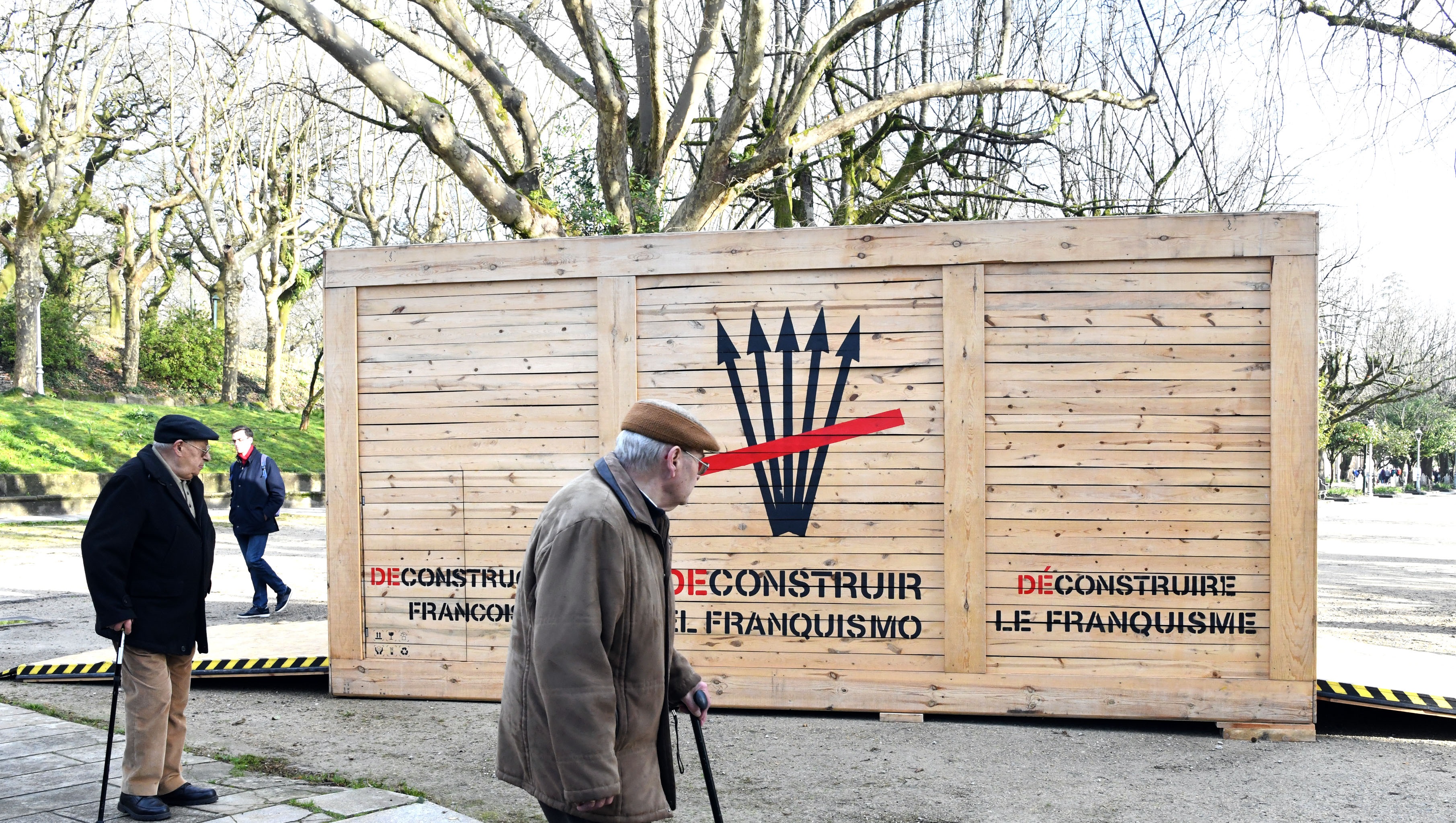 A mostra itinerante ‘Deconstruír o franquismo’, impulsada polo grupo de investigación da USC Histagra e polo Observatorio Europeo de Memorias da Fundación Solidaridad da Universidade de Barcelona, chegou este xoves a Santiago para facer da cidade compostelá, un espazo de reflexión sobre a simboloxía da ditadura. A mostra atópase situada no Paseo Central da Alameda.
