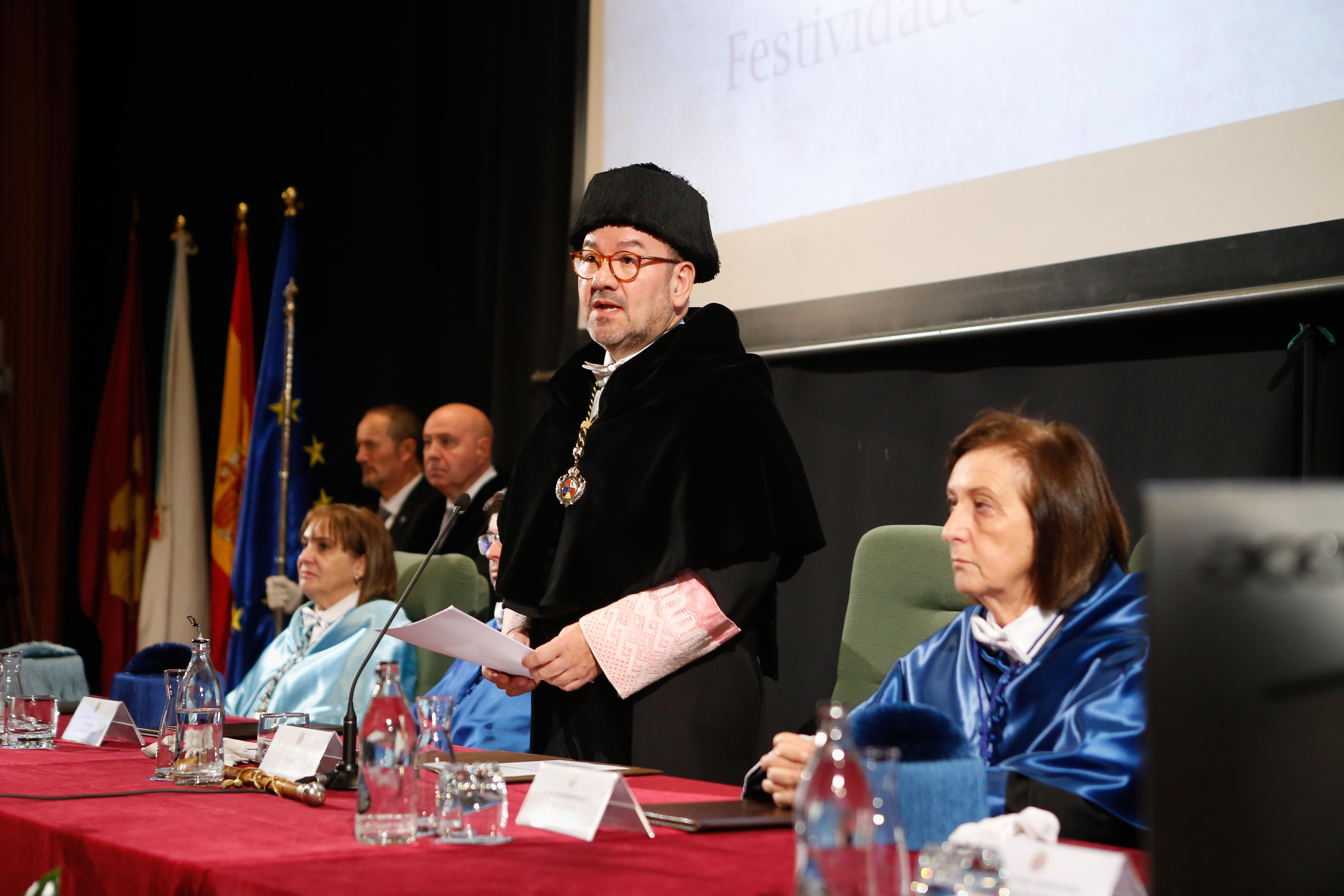 O reitor Antonio López, na súa intervención no acto de San Tomé de Aquino, en Veterinaria