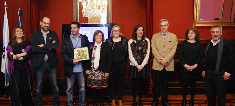 Aurora Marco e Pablo Ces recolleron este mércores o galardón que os acredita como gañadores do II Premio Xoana Torres 2017 na modalidade de creación audiovisual pola seu traballo ‘ Concha Castroviejo. Arelas de Liberdade’, do que o xurado destacou a calidade e guión do traballo, as entrevistas realizadas, a incorporación de datos biográficos que supoñen un recoñecemento histórico e polos propios méritos creativos, técnicos e documentais da obra. O Premio Xoana Torres é unha iniciativa recuperada en 2017 con motivo do Día Internacional das Mulleres polo Concello de Santiago coa colaboración da USC orientado á recuperación da memoria histórica das mulleres de Compostela.