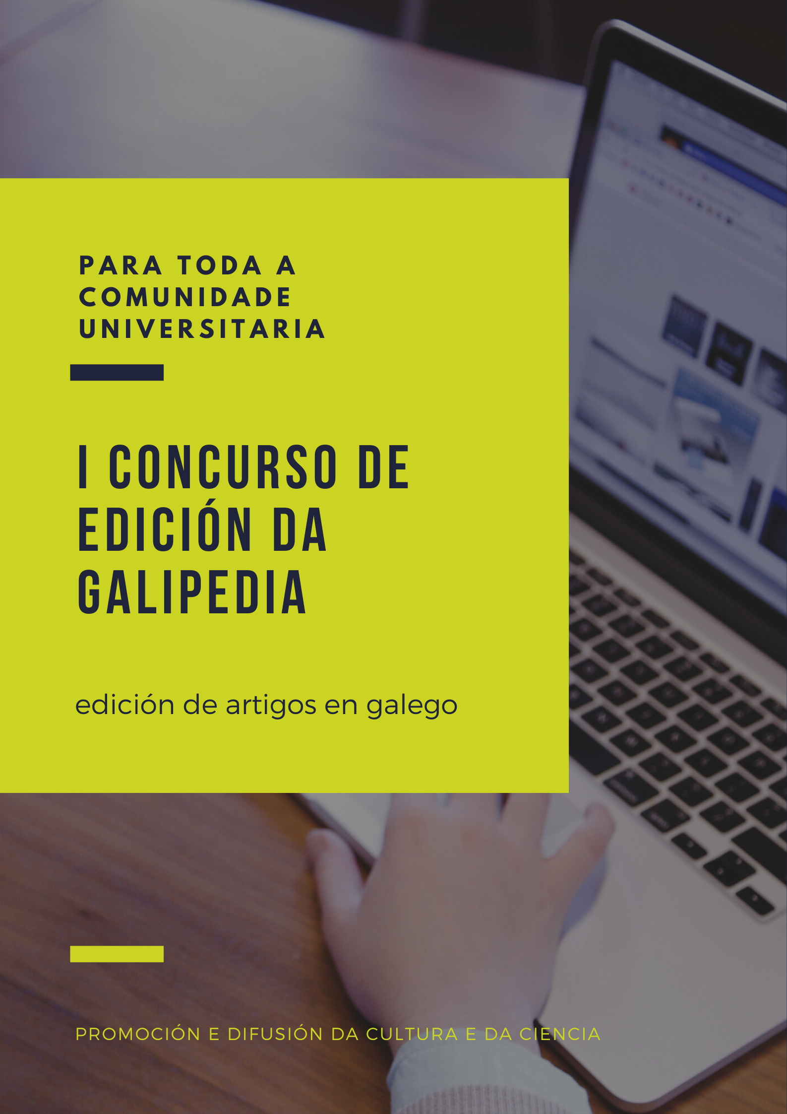 A Universidade de Santiago vén de lanzar o I Concurso de Edición da Galipedia, dirixido a toda a comunidade universitaria co obxecto de promover a produción e a difusión de artigos de calidade contrastada da wikipedia en galego en áreas como as matemáticas, a psicoloxía e nalgunhas enxeñarías.