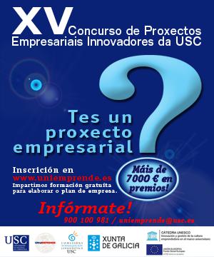 A viabilidade do proxecto; o grao de innovación do produto, proceso ou servizo, o volume de emprego proxectado; o carácter multidisciplinar do equipo; a consideración das políticas de igualdade e a relación ou interese coa lingua galega son os criterios que se terán en conta na concesión dos premios correspondentes ao décimo quinto Concurso de Proxectos Empresariais Innovadores da USC. Esta iniciativa do programa de creación de empresas da USC, Uniemprende, busca impulsar a creación de empresas innovadoras promovidas por estudantes, titulados e tituladas e persoal investigador, así como a innovación empresarial e a xeración de emprego. O concurso diríxese a estudantes e titulados/as de calquera das universidades galegas e dos centros asociados da UNED en Galicia en calquera área de coñecemento que, de xeito individual ou en equipos, teñan un proxecto empresarial innovador con potencialidade para converterse nunha empresa. Tamén se poderán presentar doutores ou doutoras, así como doutorandos/as, persoal de investigación e alumnado de terceiro ciclo que estea preparando unha tesiña ou que desenvolvan actividades investigadoras en calquera centro de investigación galego. Ademais, a convocatoria está igualmente aberta a empresas xa constituídas ao longo de 2014 e durante o período comprendido entre o 1 de xaneiro e o inicio desta convocatoria. O prazo de presentación estará aberto ata o día 7 de abril. Outorgaranse catro premio: un de base tecnolóxica, dotado con 2.000 euros e ata 24.000 euros de financiamento mediante préstamos participativo; un na modalidade de empresa xove e outro na de muller emprendedora, dotados con 2.000 euros cada un, e un cuarto na modalidade Promoción da lingua galega, que suporá unha achega económica de 1.000 euros. As persoas interesadas poden ampliar a información sobre este convocatoria na web www.uniemprende.es.