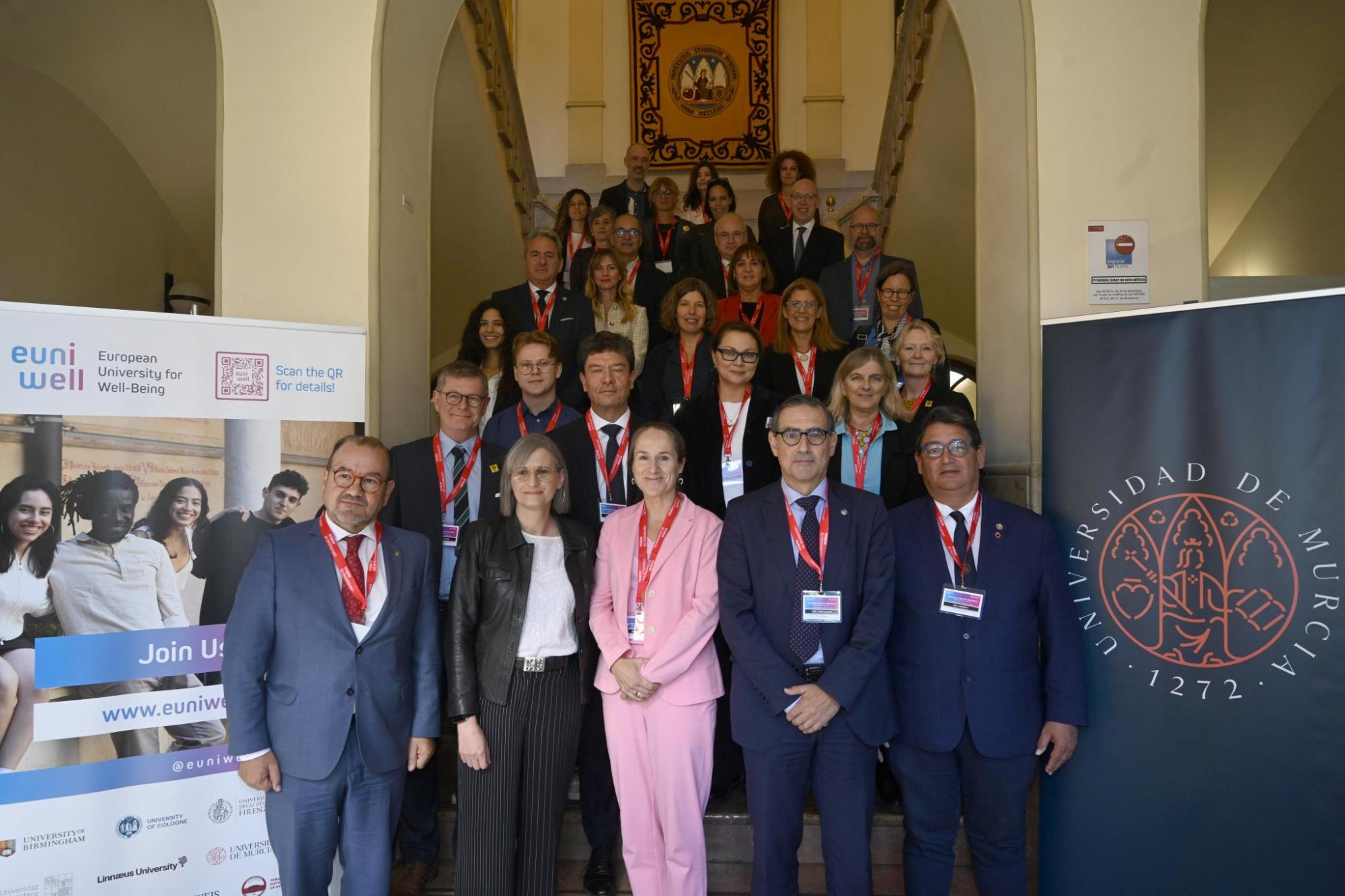 A Alianza Europea EUniWell, na que se integra a USC, desenvolve dende este xoves 10, na Universidade de Murcia, a Conferencia ‘EUniWell Showcase - Becoming a Voice for Well-Being’. A través deste foro que se estende ata o venres 10, a Alianza quere fortalecer a colaboración entre as institucións que a integran, así como visibilizar e poñer en valor os logros acadados na fase piloto do proxecto Erasmus+, que remata agora, nos eidos da investigación, a educación, a innovación e a participación cidadá no marco dunha axenda común do benestar. O reitor da USC, Antonio López, e a vicerreitora de Titulacións e Internacionalización, María José López Couso, encabezan a delegación da USC nesta conferencia que tamén servirá para dar a coñecer as oportunidades que se abren para a comunidade universitaria dentro do novo proxecto ‘EUniWell–Well-Being for our Futures (EUniWellWeFF)’. O reitor asiniu a adhesión da USC á EUniWell Declaration on Open Education.