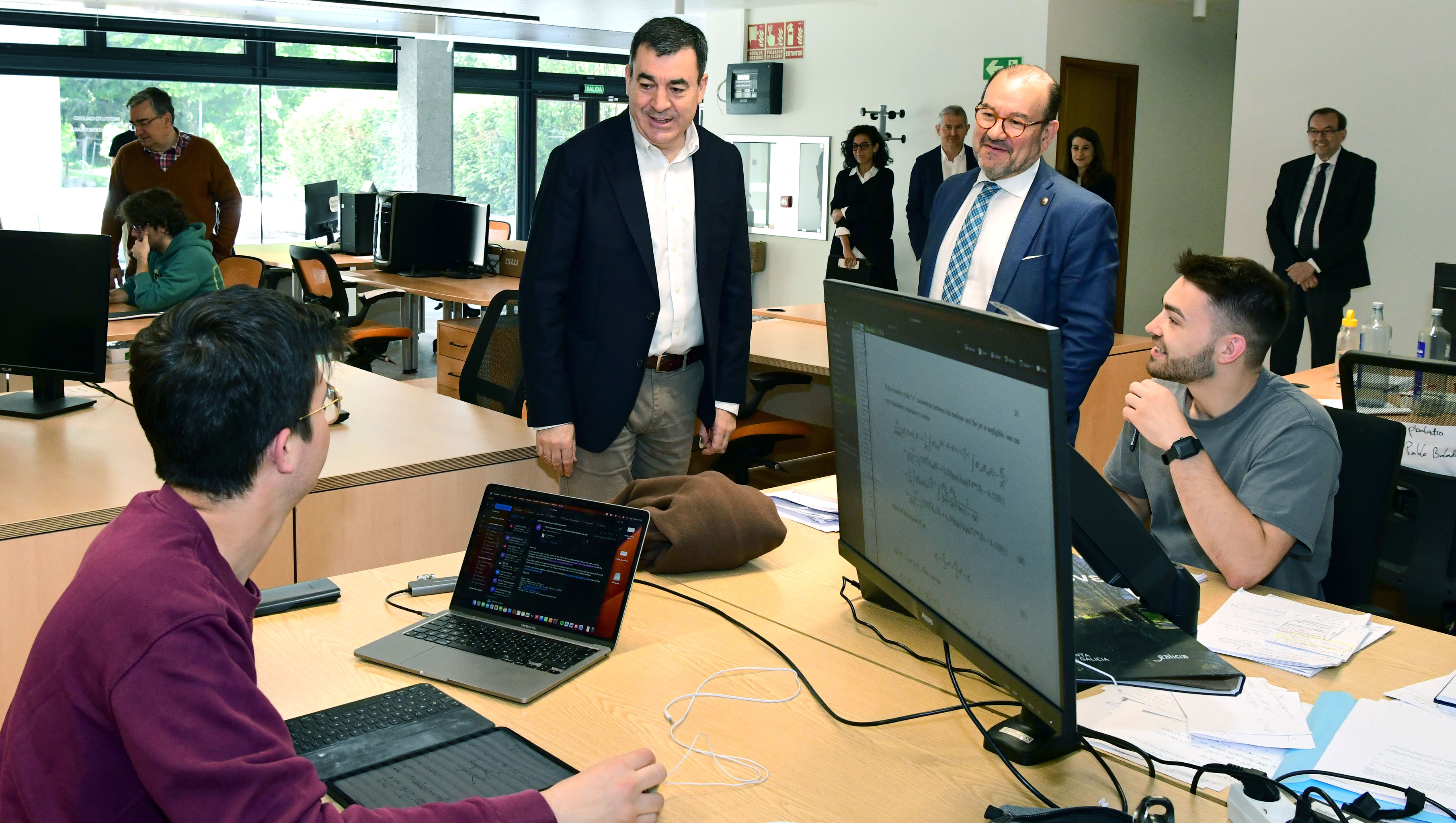 O reitor e o conselleiro conversan co persoal do IGFAE. Foto: Santi Alvite