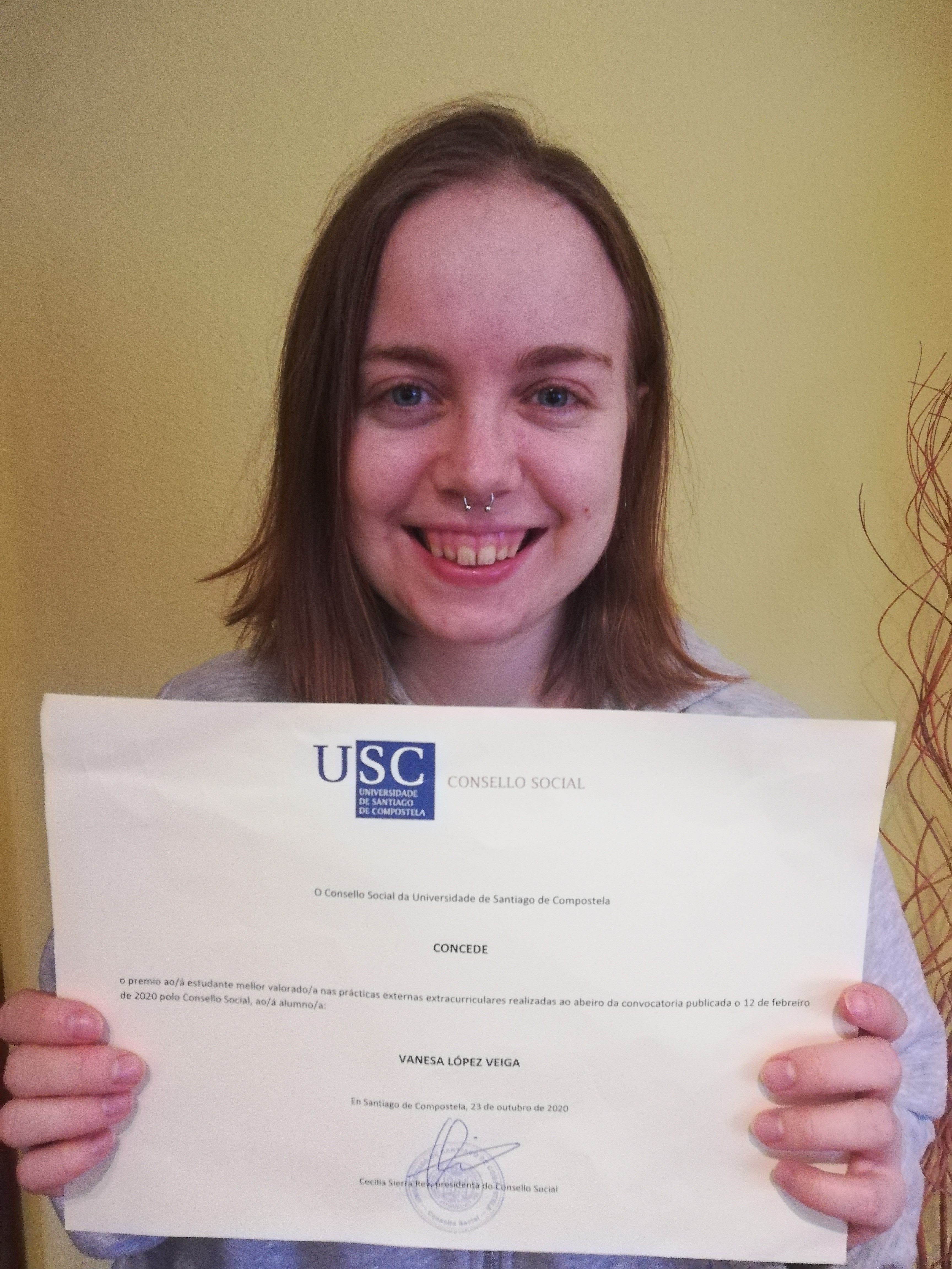 O Consello Social galardoa a Vanesa López Veiga como a alumna mellor valorada nas prácticas externas extracurriculares