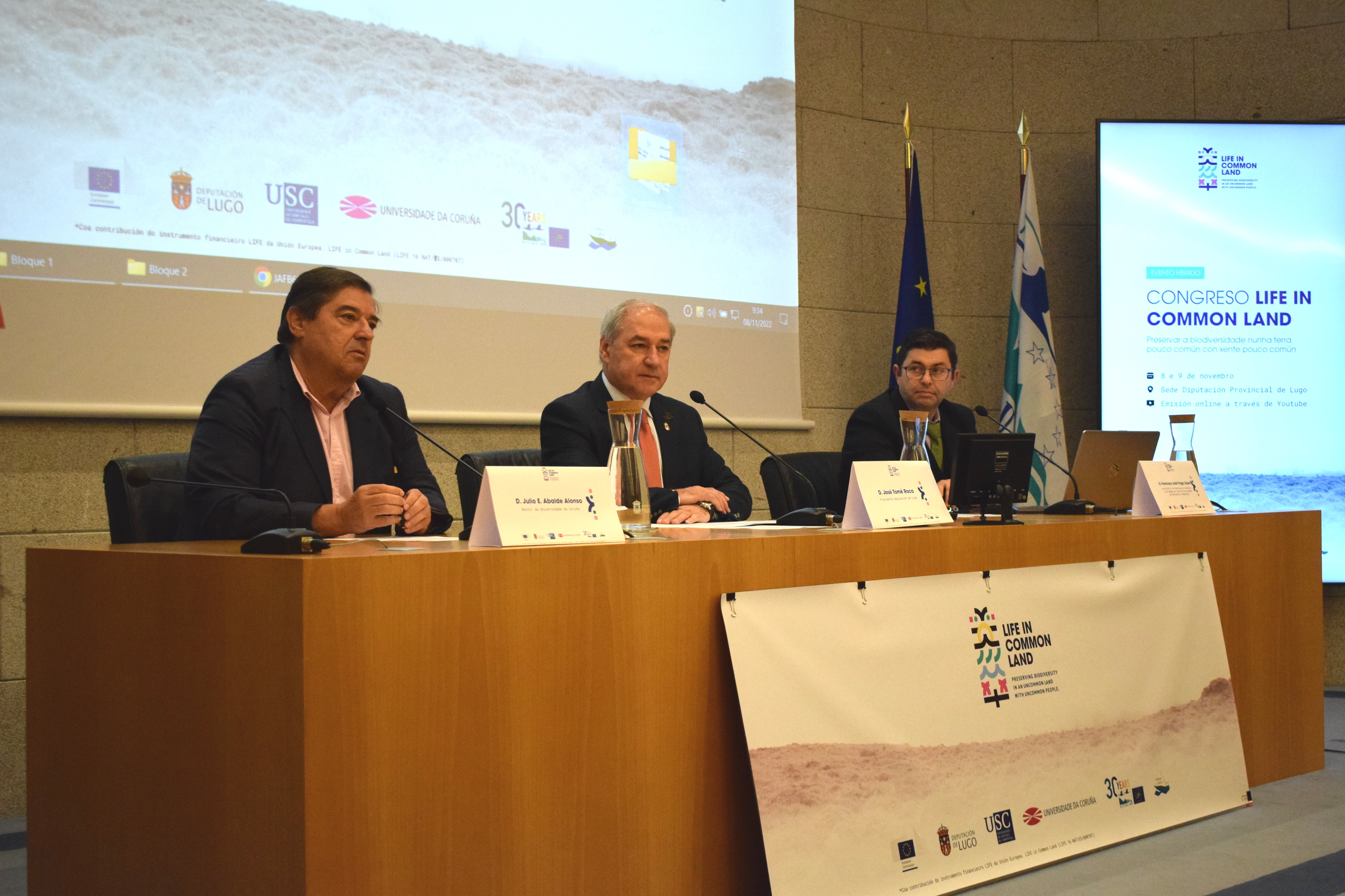 Julio Abalde, José Tomé e Francisco Fraga, na apertura do congreso final do life In Common Land