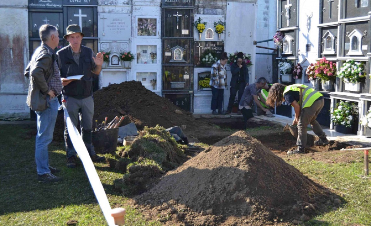 A piques de rematar os traballos do I Plan Cuadrienal de Memoria Democrática (2021-2024), o equipo do grupo Histagra da USC atopou importantes achados preliminares na actuación de exhumación no cemiterio de O Val (Narón), que contemplaba a realización dunha gabia na parte dianteira dos nichos.