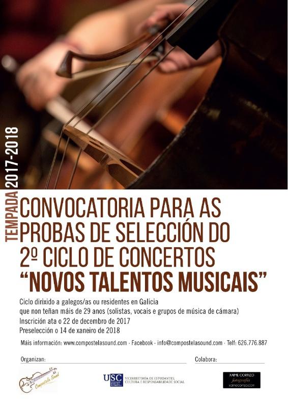 A Universidade de Santiago e a Asociación Compostela Sound buscan músicos galegos que participen na segunda edición do ciclo de concertos ‘Novos Talentos Musicais’ que se desenvolverá en Compostela entre os meses de febreiro e marzo.