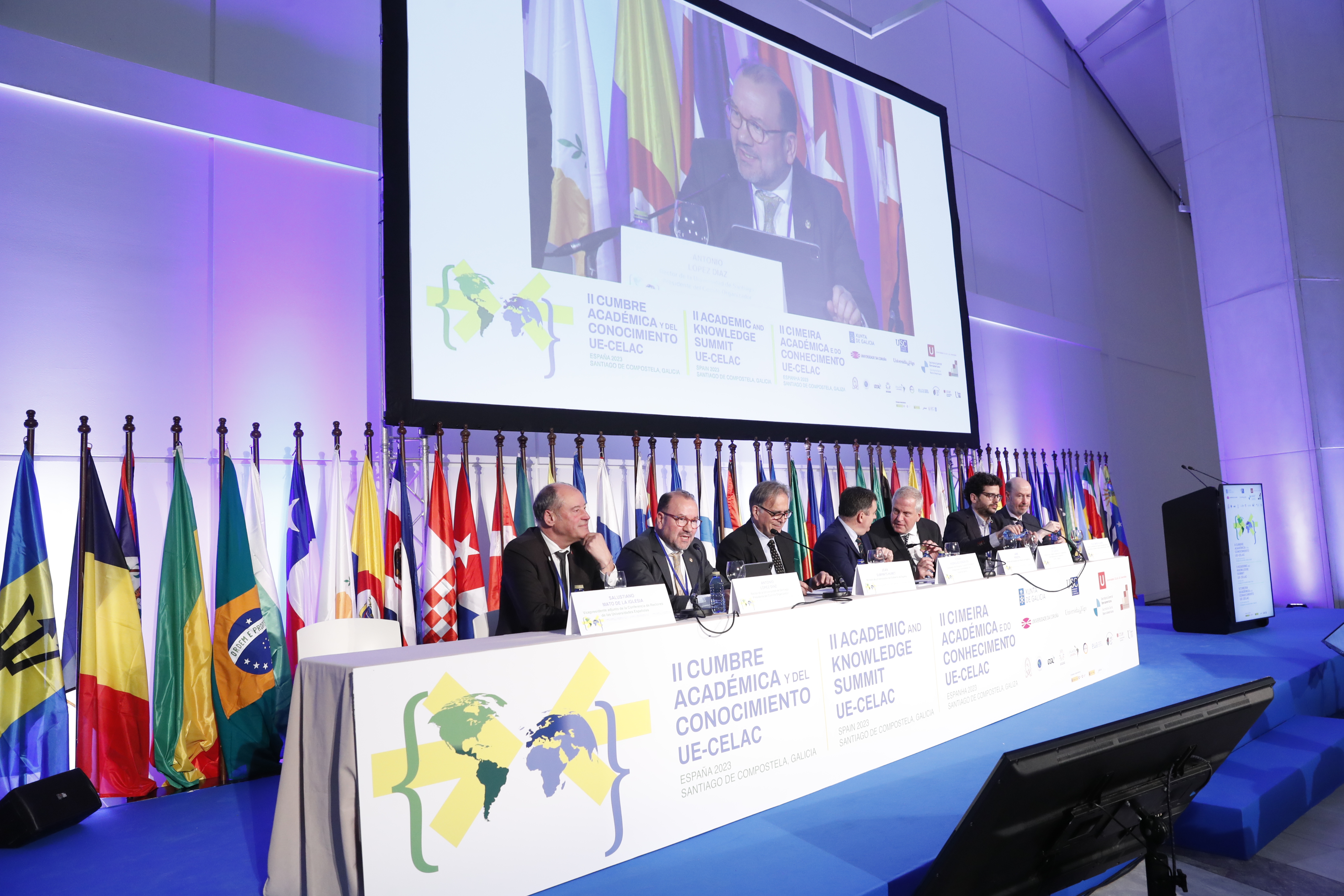 “Situar a educación no máis alto da axenda política mundial e mobilizar á acción, á solidariedade e á procura de solucións e transformar a educación nun mundo en constante evolución”. Con esta vontade remata o cumio académico e do coñecemento UE-CELAC que se desenvolveu esta semana en Compostela coa USC como institución anfitrioa. O foro definiu a súa intención de establecer unha Alianza co Sistema das Nacións Unidas que permita, dende o compromiso das universidades cos Obxectivos de Desenvolvemento Sostible, reforzar a participación das institucións de educación superior e investigación na promoción e o desenvolvemento da Axenda 2030, vinculándoas co Cume do Futuro que debería celebrarse en 2024, tanto co seu proceso preparatorio como coa implementación dos resultados que se alcancen nel.