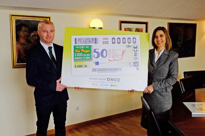 O cupón presentouse publicamente este martes na Facultade de Ciencias Económicas e Empresariais da Universidade de Santiago nun acto no que participaron a decana do centro, Emilia Vázquez, e o director da ONCE en Santiago de Compostela, José Antonio Riveiro Canosa.