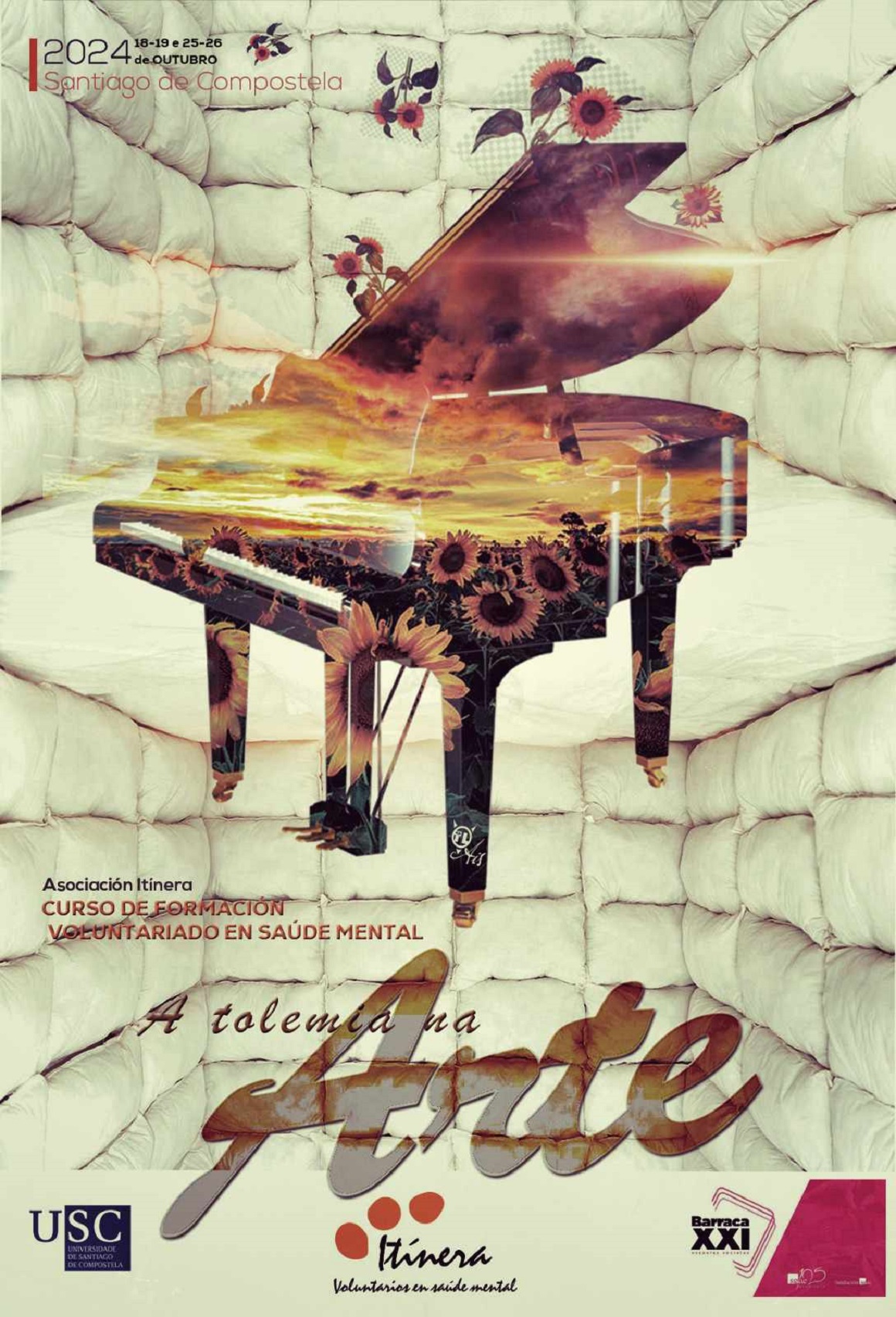 Esta actividade formativa está organizada pola Asociación Itinera en colaboración coa Fundación Barraca XXI e o Servizo de Participación e Inclusión Universitaria (SEPIU) da USC. Esta edición do curso de voluntariado xirará arredor da relación da saúde mental e das diferentes expresións artísticas (cinema, música, artes plásticas...), e de como se representaron nas diversas artes as enfermidades mentais, a través da experiencia de diferentes profesionais artísticos e do eido da saúde mental.