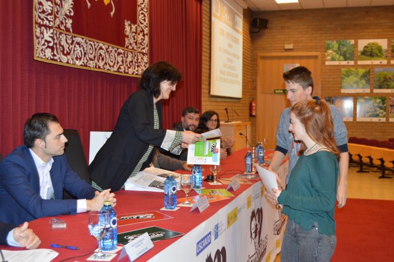 O profesor do IES Iturrama de Pamplona e coordinador do equipo Iruma ,José Miguel Zabaleta Trecu, xunto cos integrantes do grupo, Andoni Alfonso, Xabier Pabolleta, Ander Dufur, Mikel Garces, Irati Saragüeta, Markel Iruretagoyena, Xabier Leonardo e Unai Arana, recolleron os premios que acreditan a brillante competición desta formación, que rematou en segundo lugar da clasificación final. Asemade, o equipo Leonardo, coordinado polo mesmo docente e formado por dous destes estudantes pamplonicas recolleu o premio outorgado pola Fundación Mujeres e do que fixo entrega María Hervada.