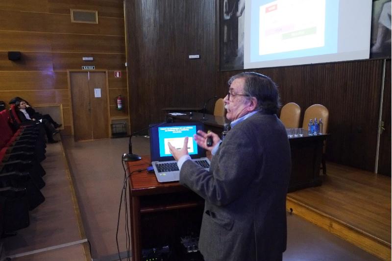Logo da benvida da decana da Facultade de Química, Pilar Bermejo, e da presentación dos obxectivos da xornada por parte de José Benito Quintana, abriu a quenda de intervencións o catedrático do Servizo de Toxicoloxía Forense da USC Manuel López Rivadulla para falar do control do consumo de drogas en tráfico rodado, a quen seguiu João Matias, do EMCDDA, aludindo ao abuso de sustancias en Europa explicando as tendencias actuais e a utilidade que a análise de augas residuais proporcionará á hora de producir datos de xeito máis inmediato así como para identificar pautas de consumo dentro dun país a nivel máis local.