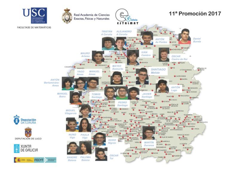 Os 25 estudantes que conforman a 11ª promoción de Estalmat-Galicia de estímulo do talento matemático en rapaces de 12 e 15 anos, participarán este sábado 23 no acto inaugural do curso 2017-2018, que terá lugar ás 10:30 horas na Aula Magna da Facultade de Matemáticas.