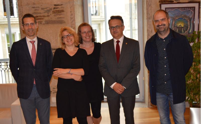 Anna Nowak, do Centro de Transferencia de Tecnoloxía da Universidade de Cracovia e Małgorzata Lalicka, da oficina de fondos estruturais da mesma institución, foron recibidas este mércores polo vicerreitor de Coordinación do campus de Lugo, Javier Bueno Lema, polo vicerreitor de Desenvolvemento Científico e Tecnolóxico, Andrés Barreiro Lois, e polo técnico de transferencia da USC, José Manuel Rebolo.